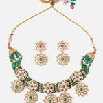 Saadgi Gold Plated Green Womens Choker Necklace Set with Pair of Earrings
