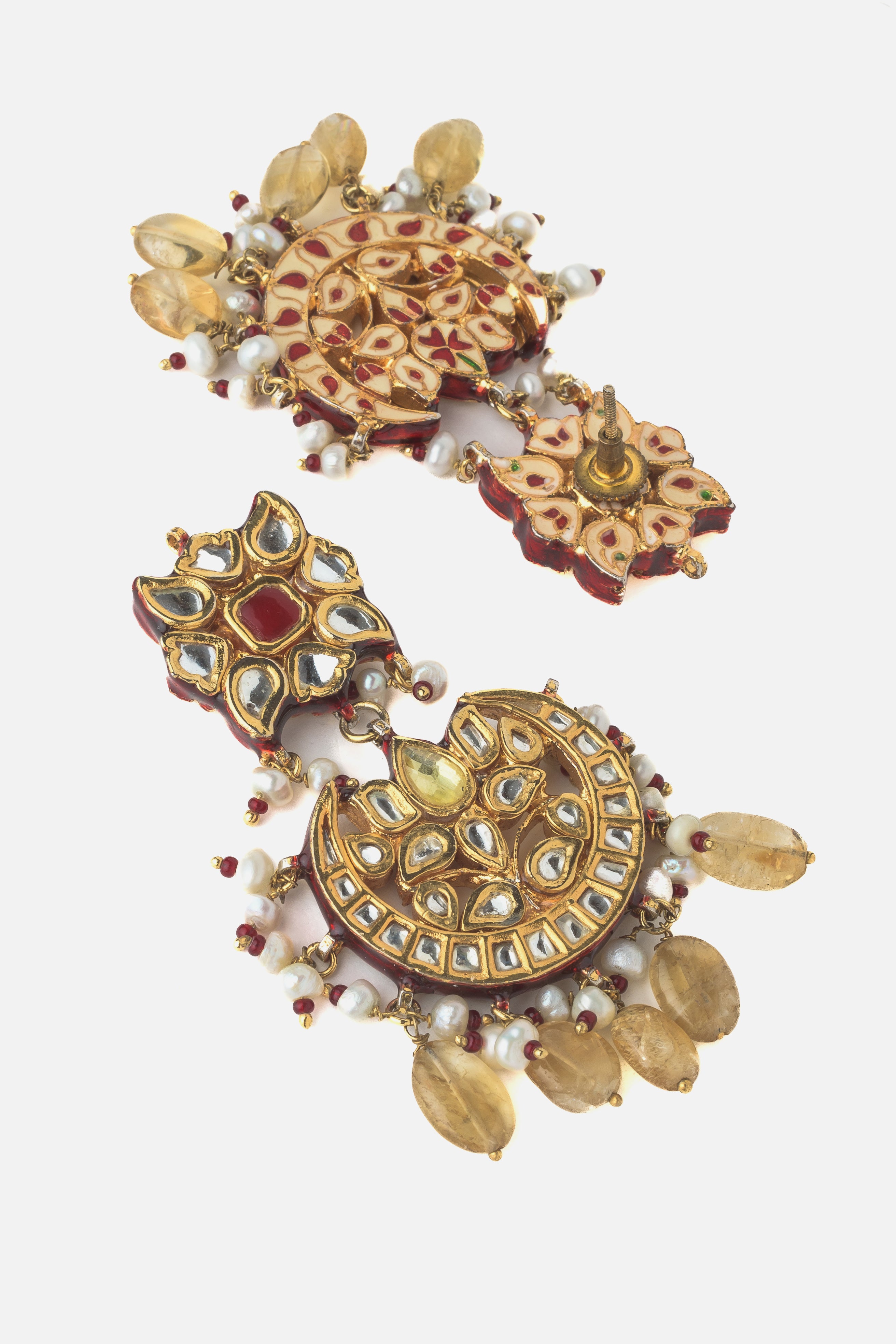 • Traditional Kundan Work: Handcrafted with intricate Kundan stones and red enamel detailing for a regal look.