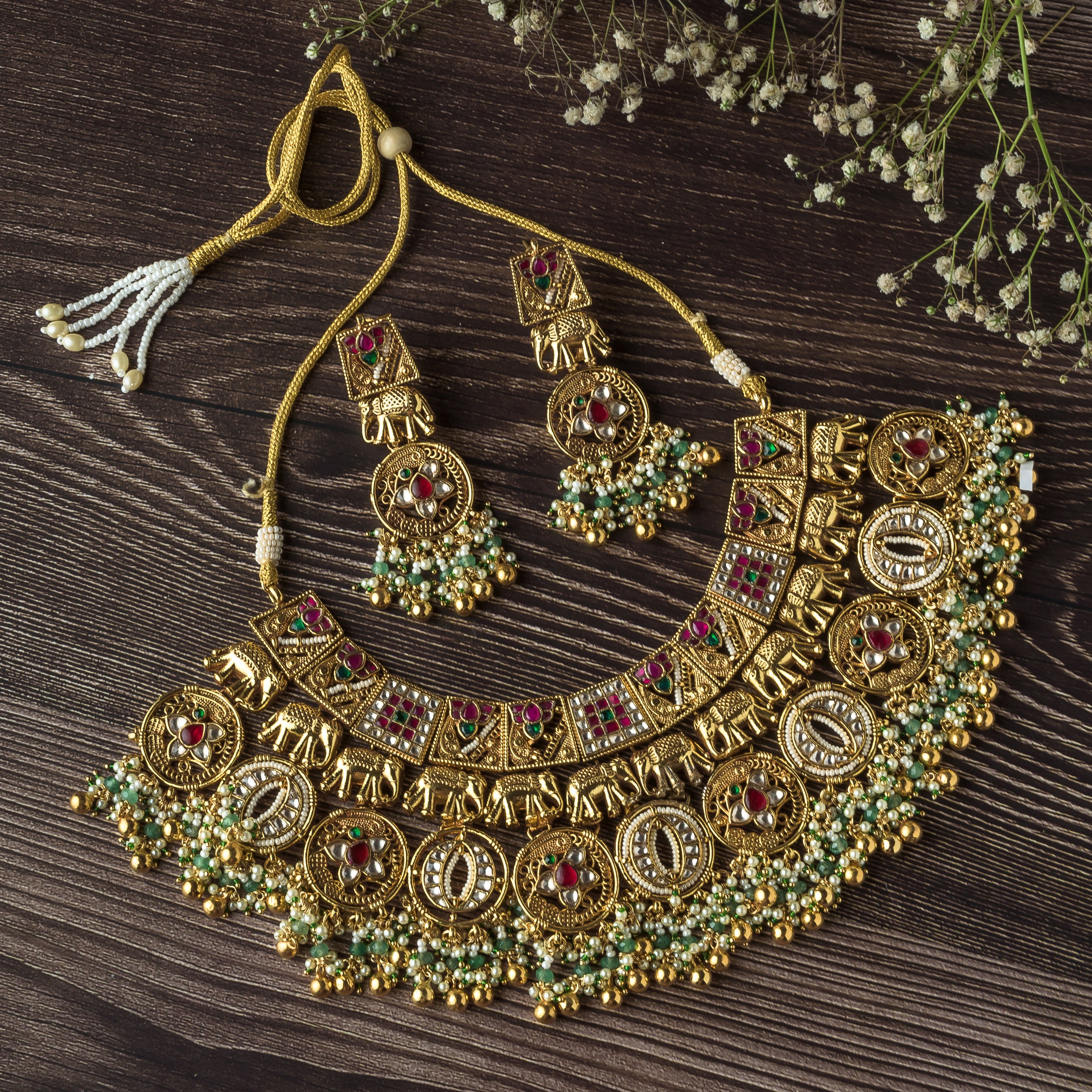 Isvaraah 2.0 Gold Plated Green Choker Necklace Set with Pair of Earrings