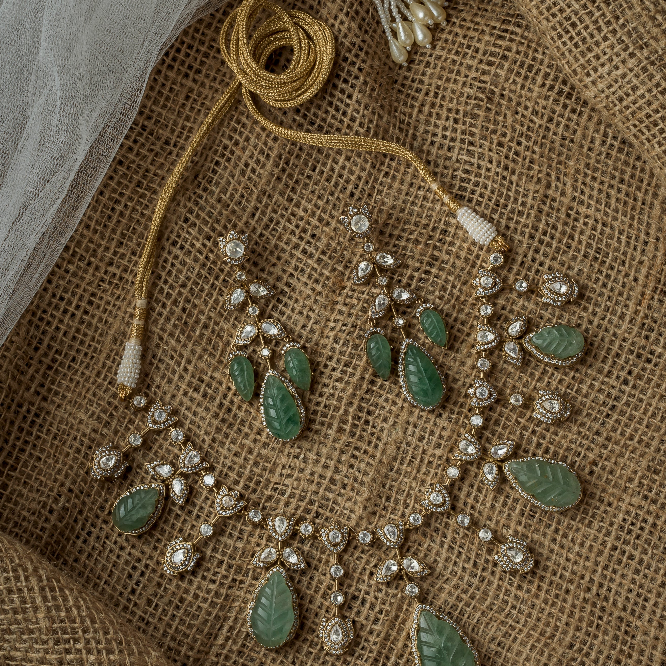 Isvaraah 2.0 Gold Plated Green Choker Necklace Set with Pair of Earrings