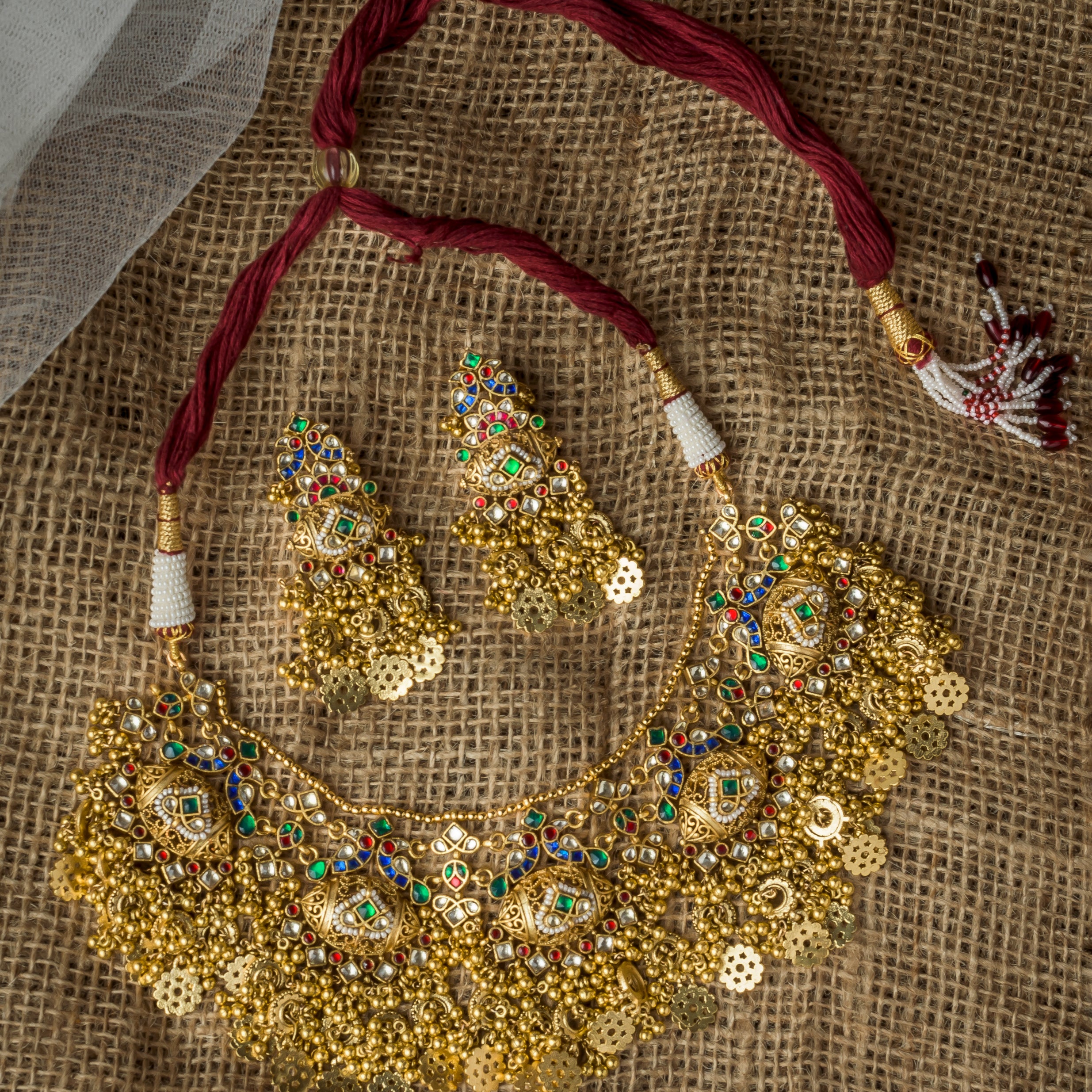 Isvaraah 2.0 Gold Plated Multicolored Choker Necklace Set with Pair of Earrings