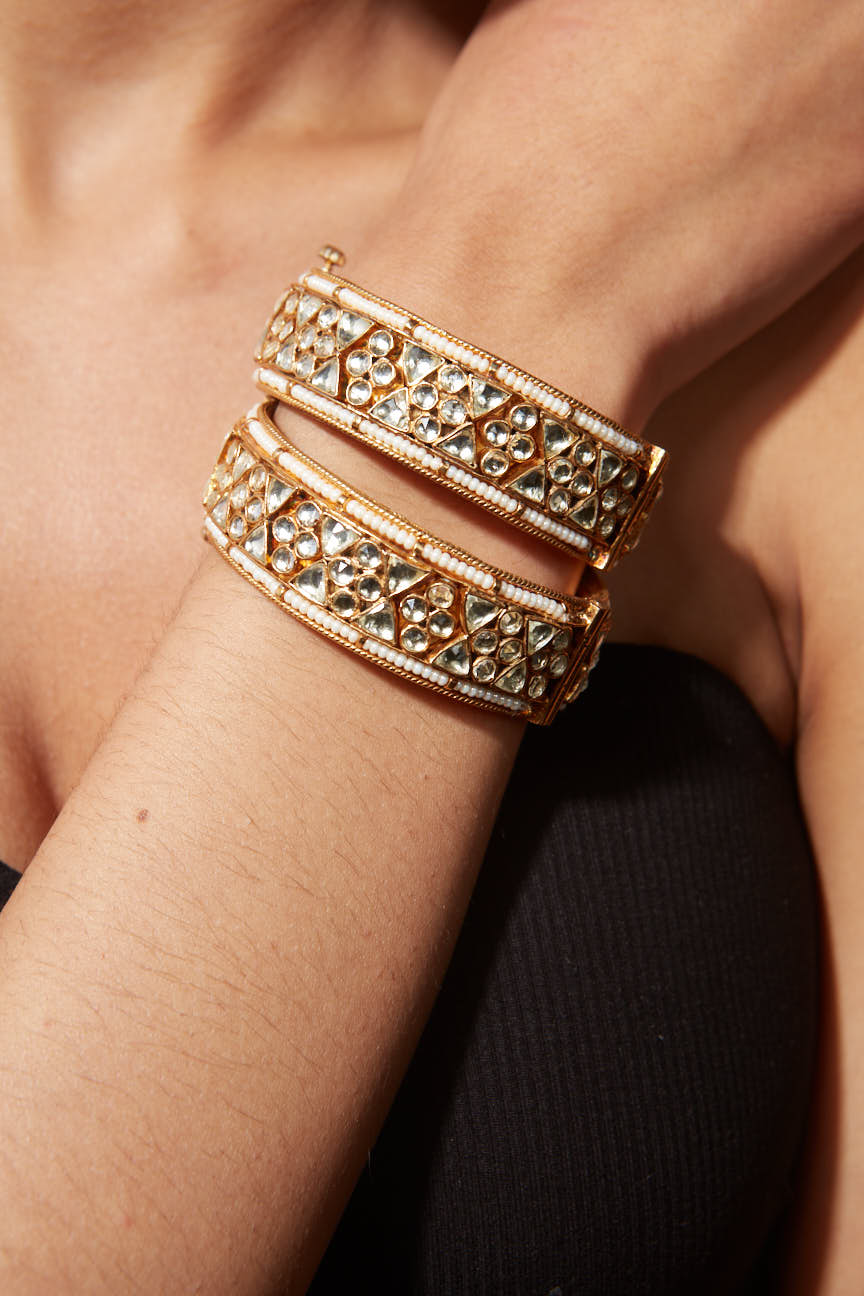 Aatman Gold Plated Womens Kundan, Polki Pair of Bangles