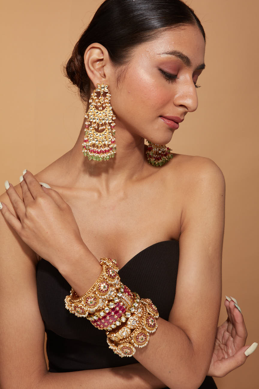 Aatman Gold Plated Pink Womens Kundan, Polki Pair of Earrings