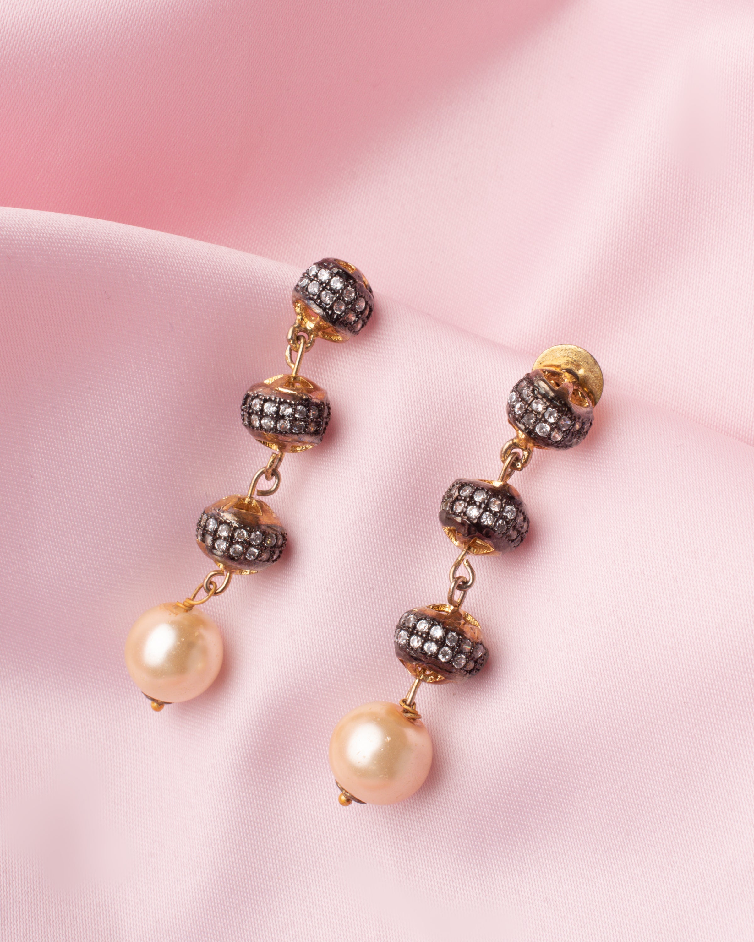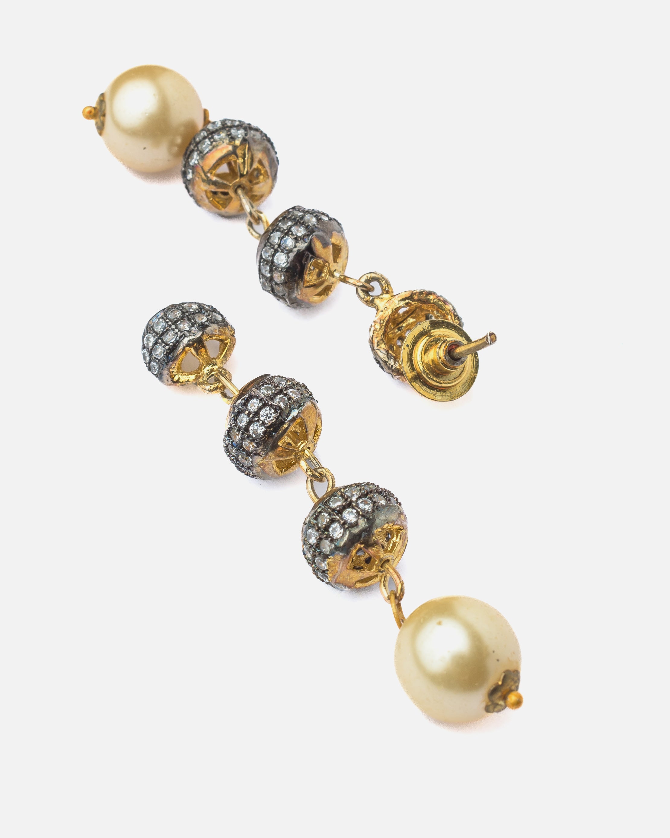 Elegant drop earrings featuring sparkling stones and delicate pearl accents. The gold-tone finish adds a touch of luxury, making them perfect for formal occasions or everyday elegance. Lightweight and stylish.