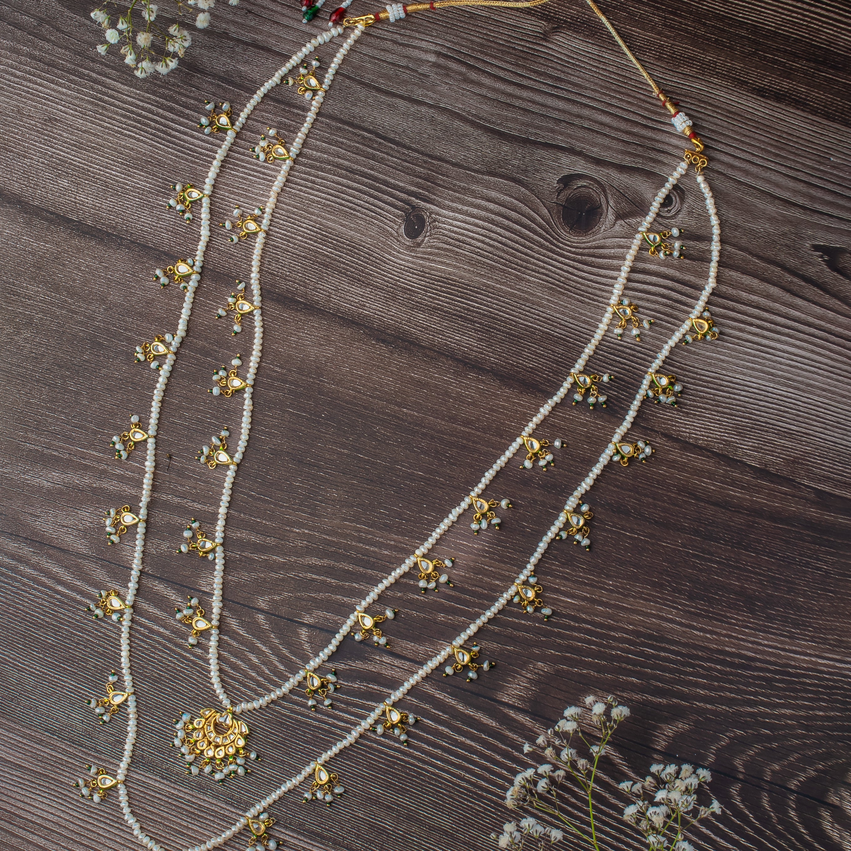 Antara Gold Plated White Womens Kundan, Polki Long Necklace set (Freesize)
