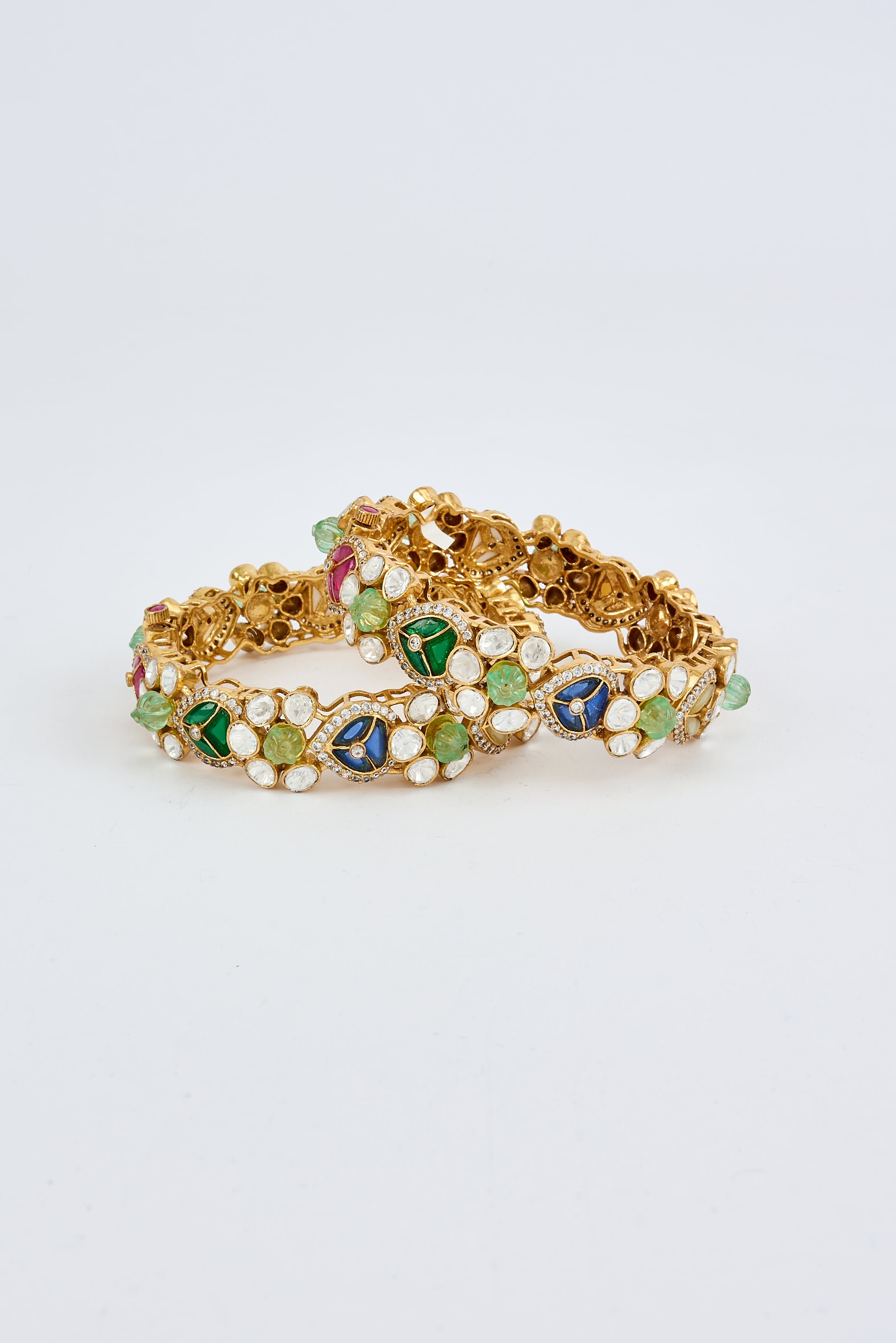Antara Gold Plated Multicolored Womens Kundan, Polki Pair of Bangles