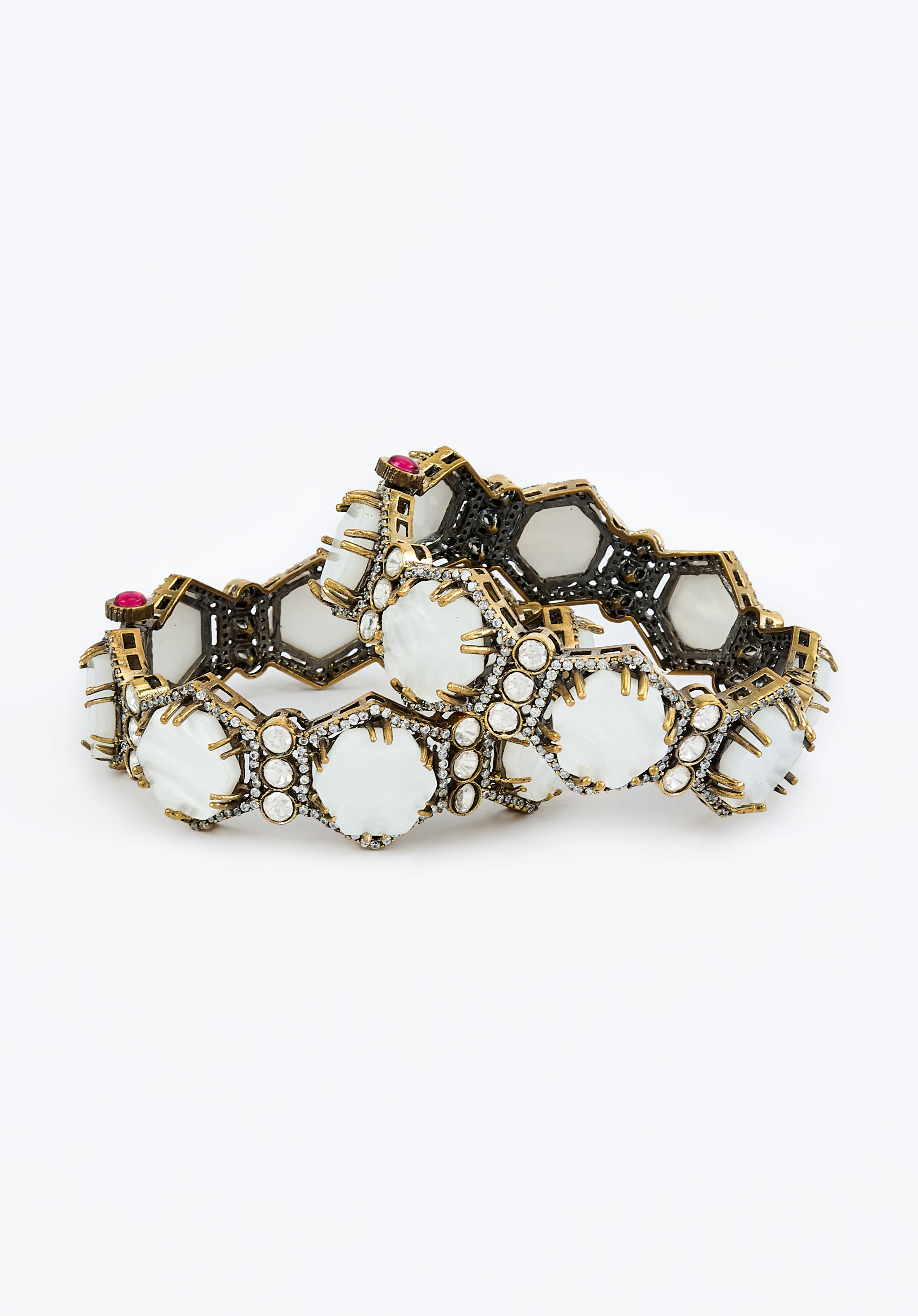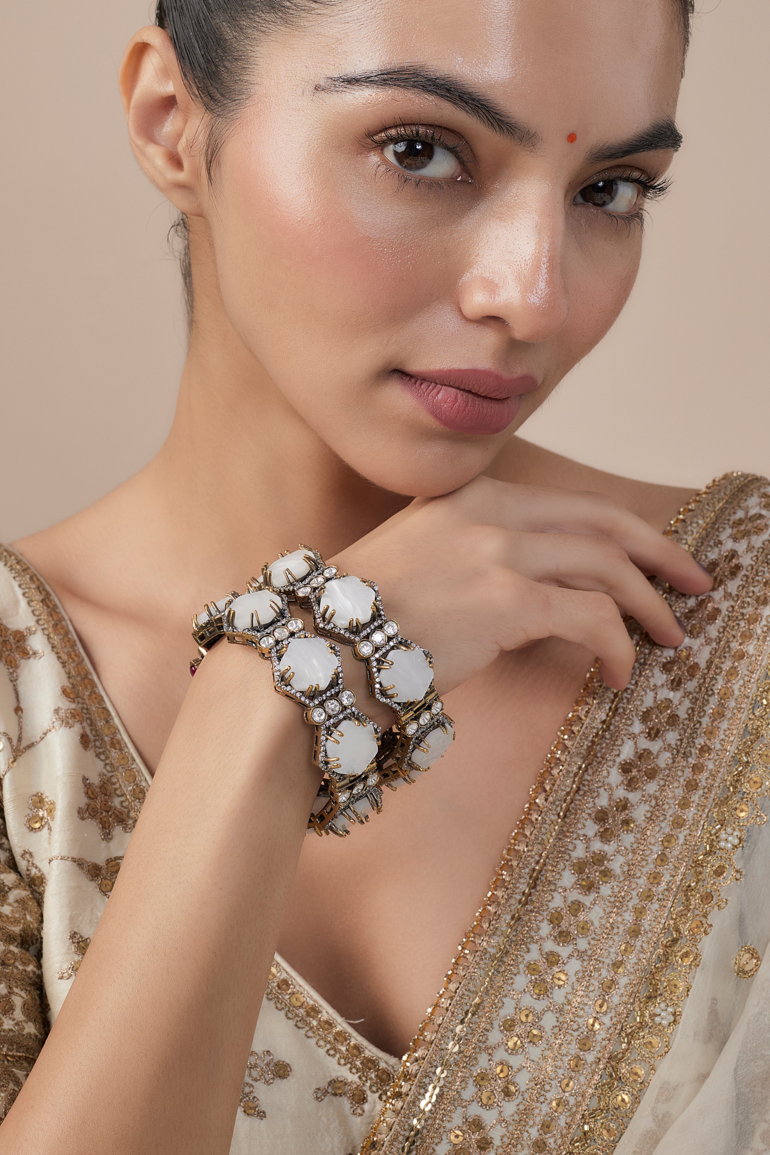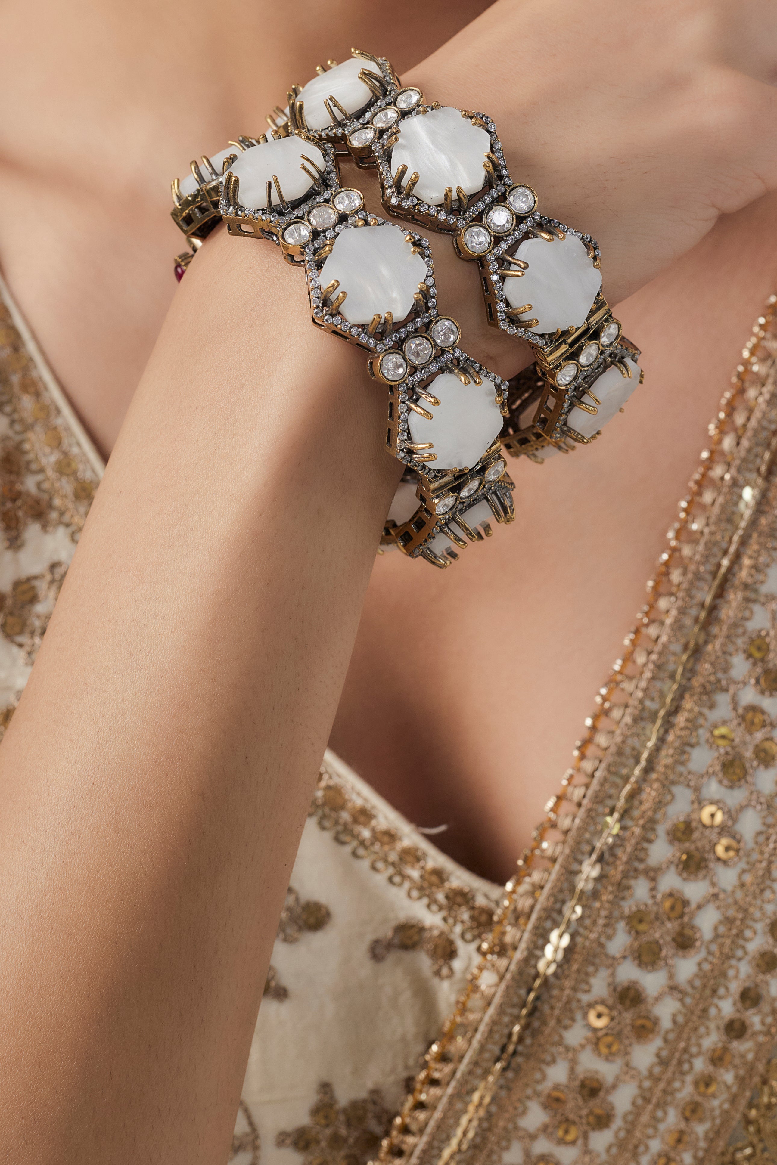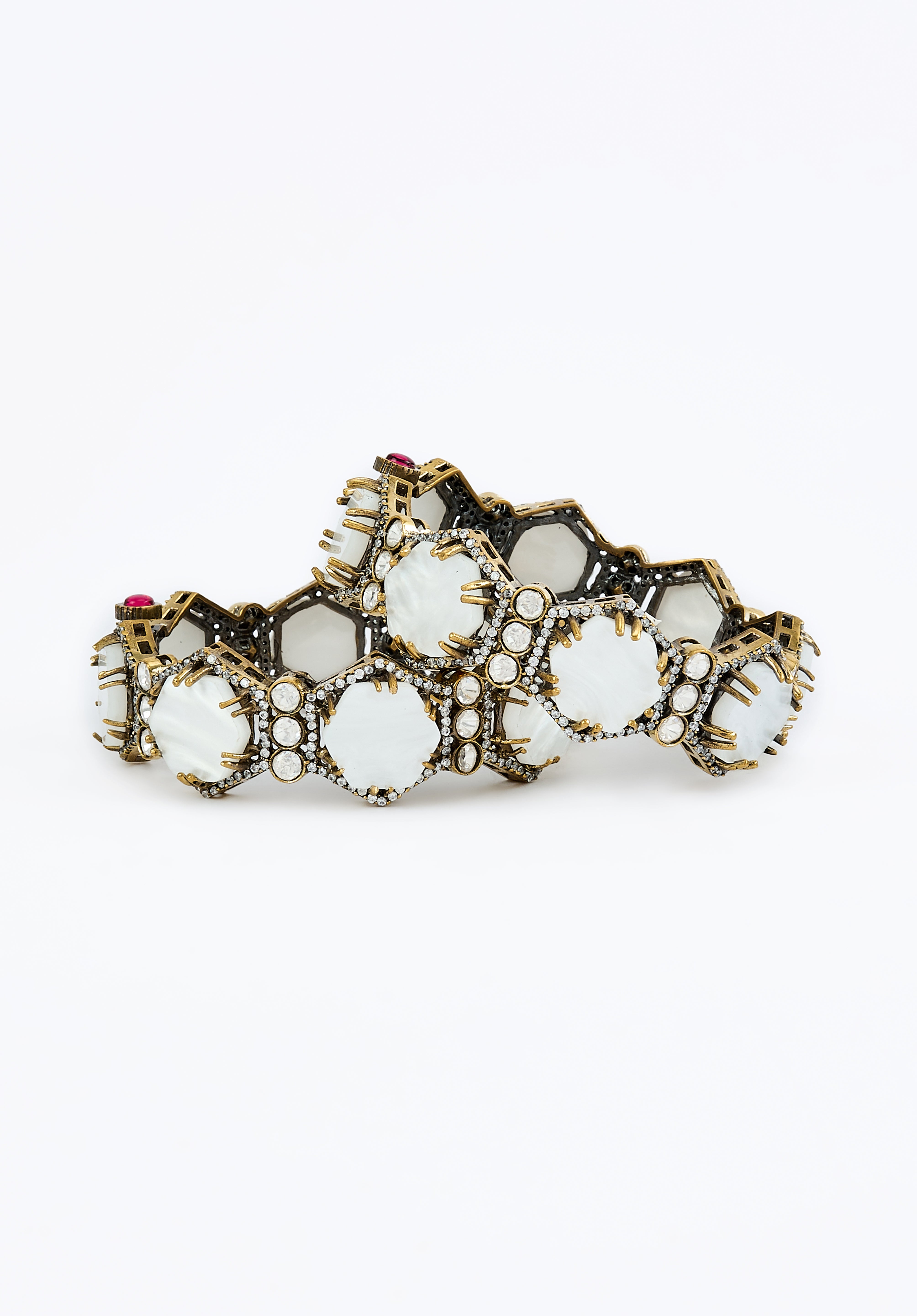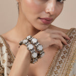 Elegant handcrafted bracelet with opulent white stones and intricate gold-tone detailing. Perfect for traditional attire, adding a touch of timeless grace and sophistication to your look.