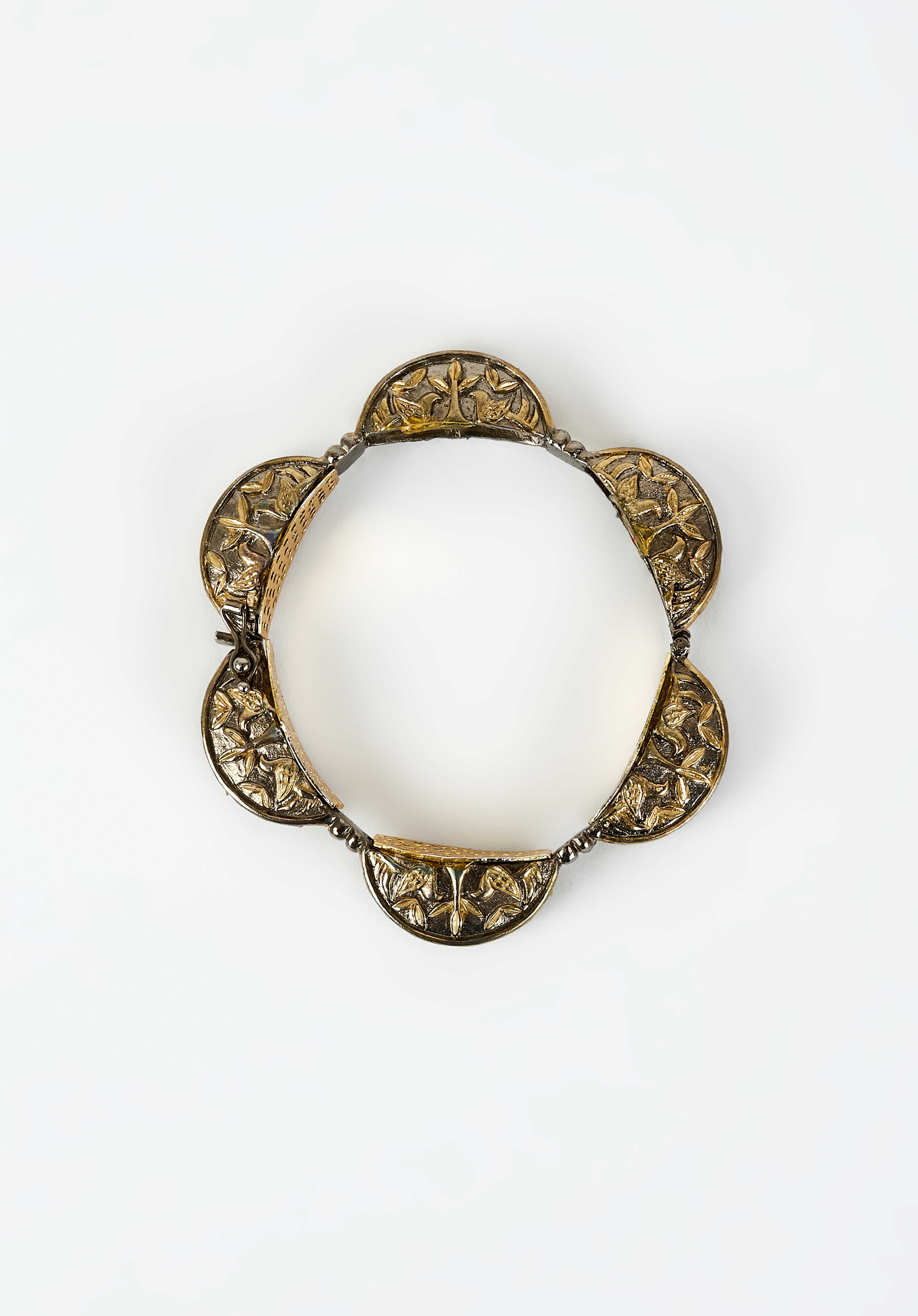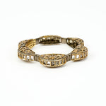 - Golden Elegance: The intricate gold bracelet showcases a unique design with elegant engravings and subtle geometric patterns.