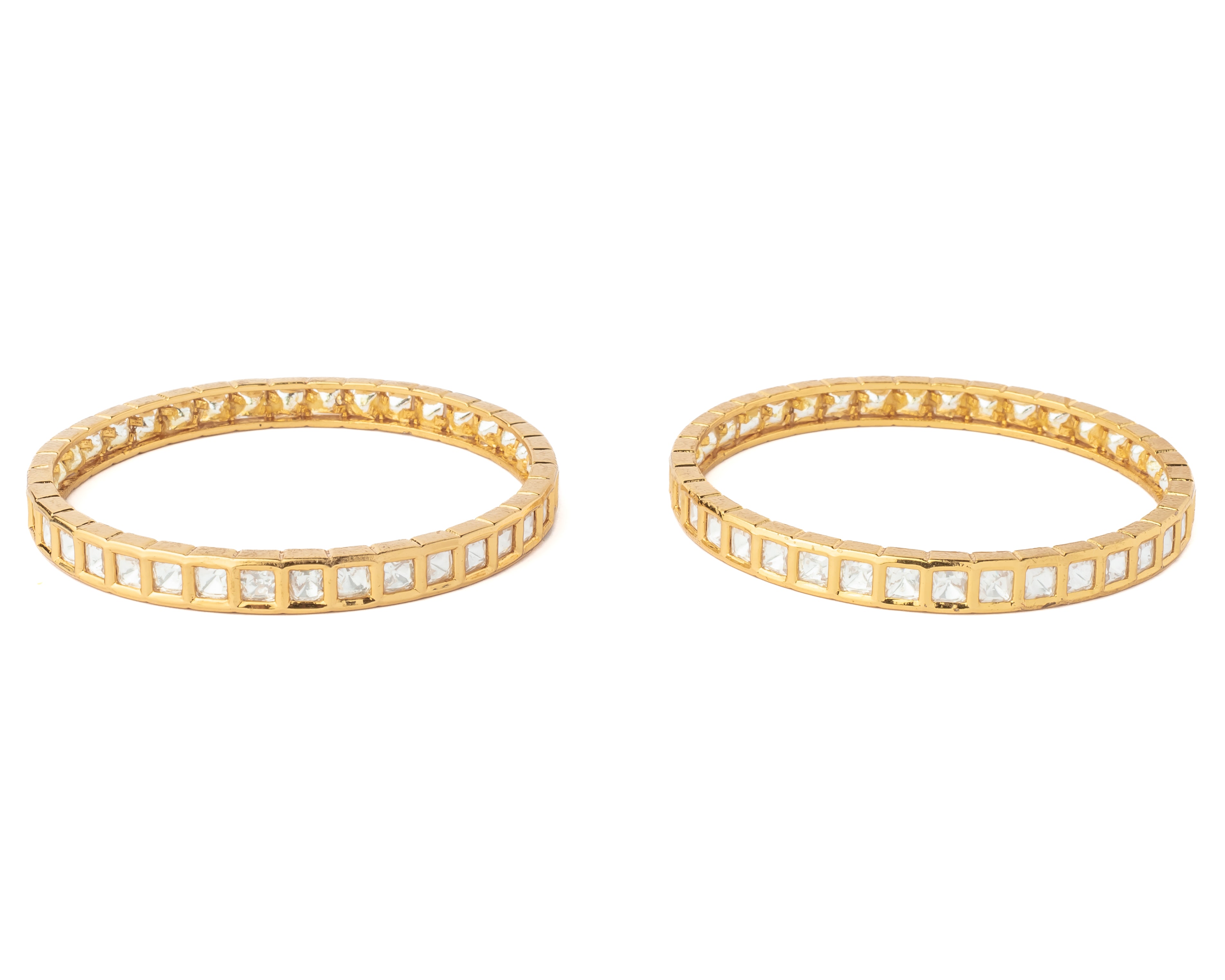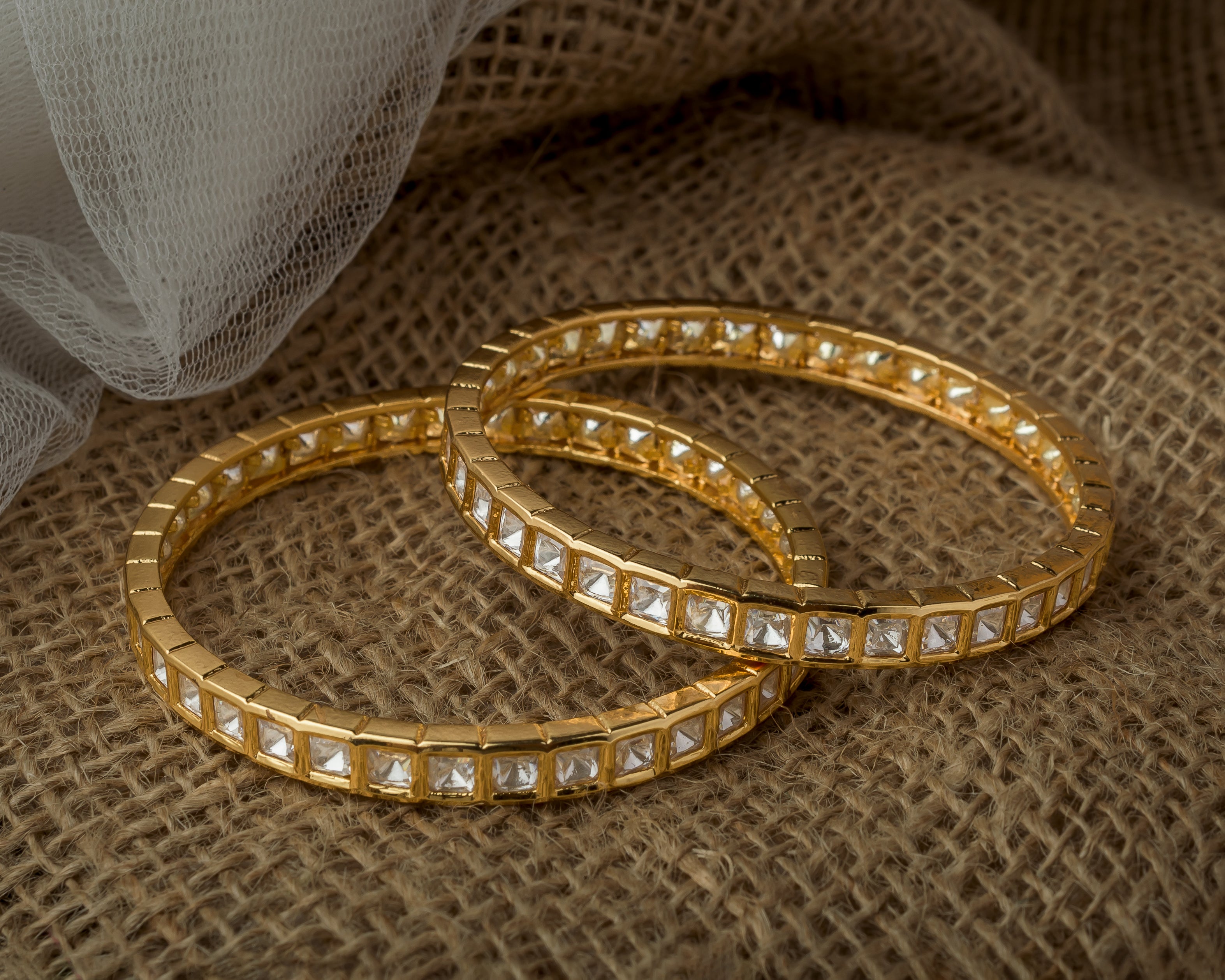 - Sleek & Elegant Design: Gold bangles adorned with square-cut diamonds for a refined and sophisticated look.