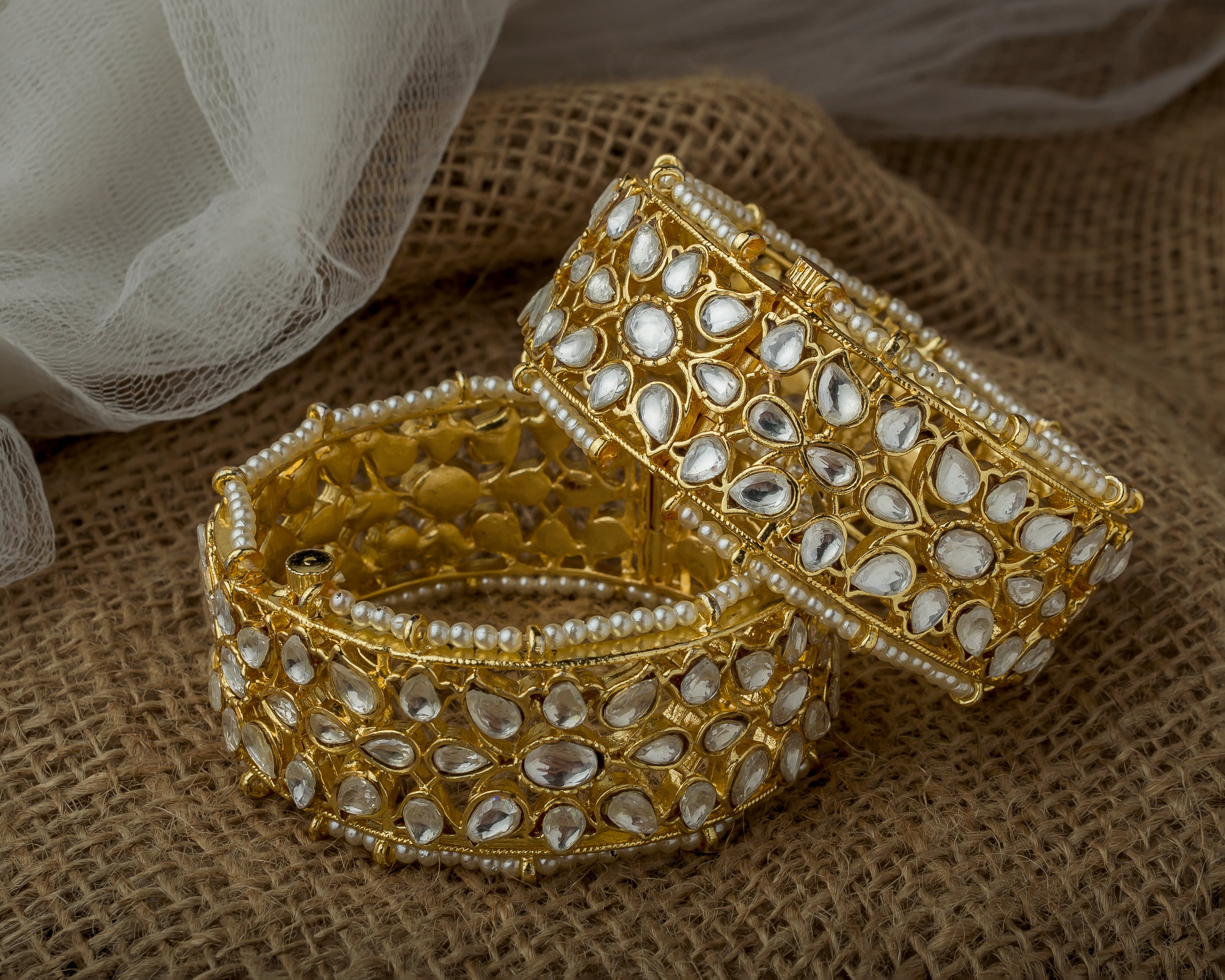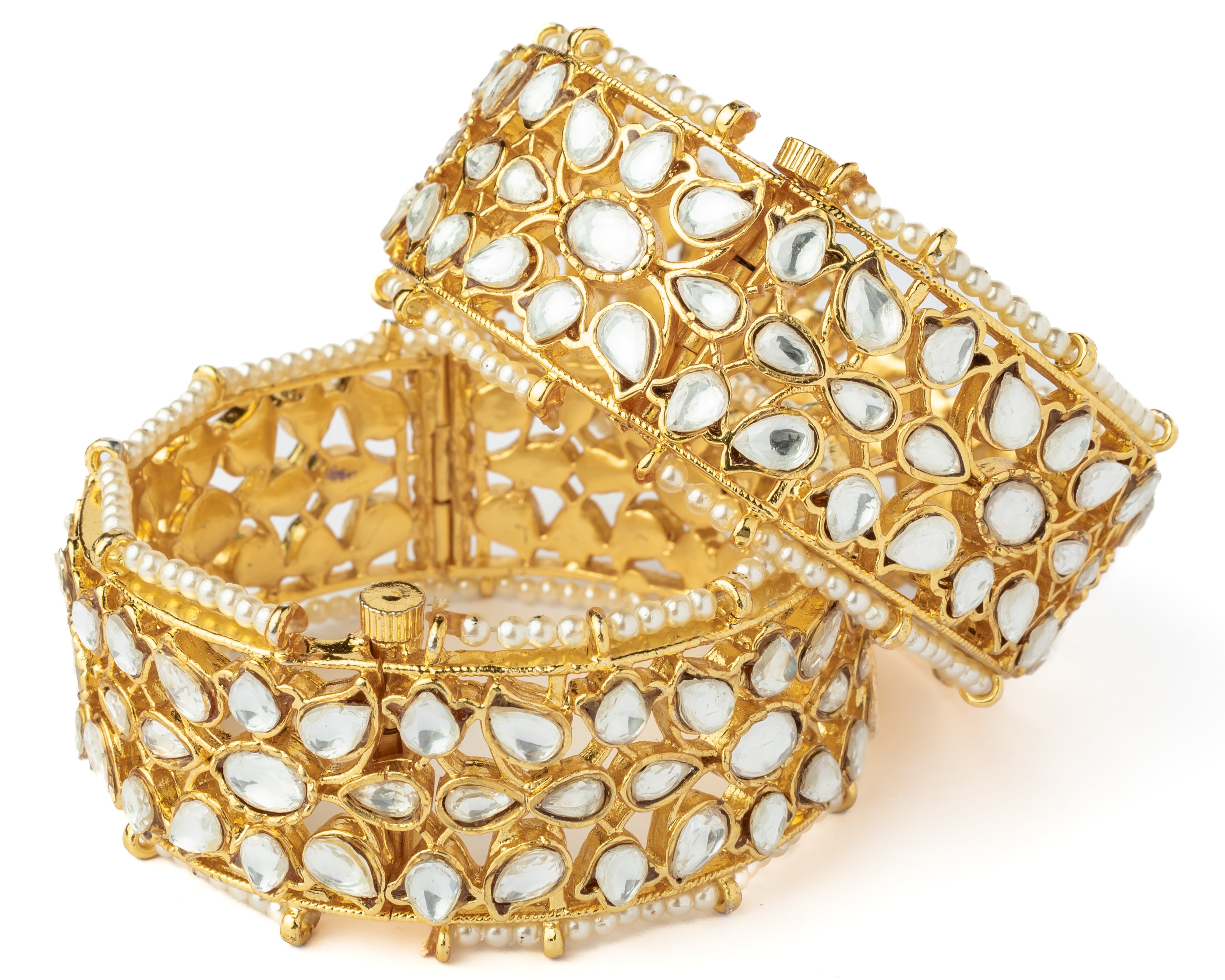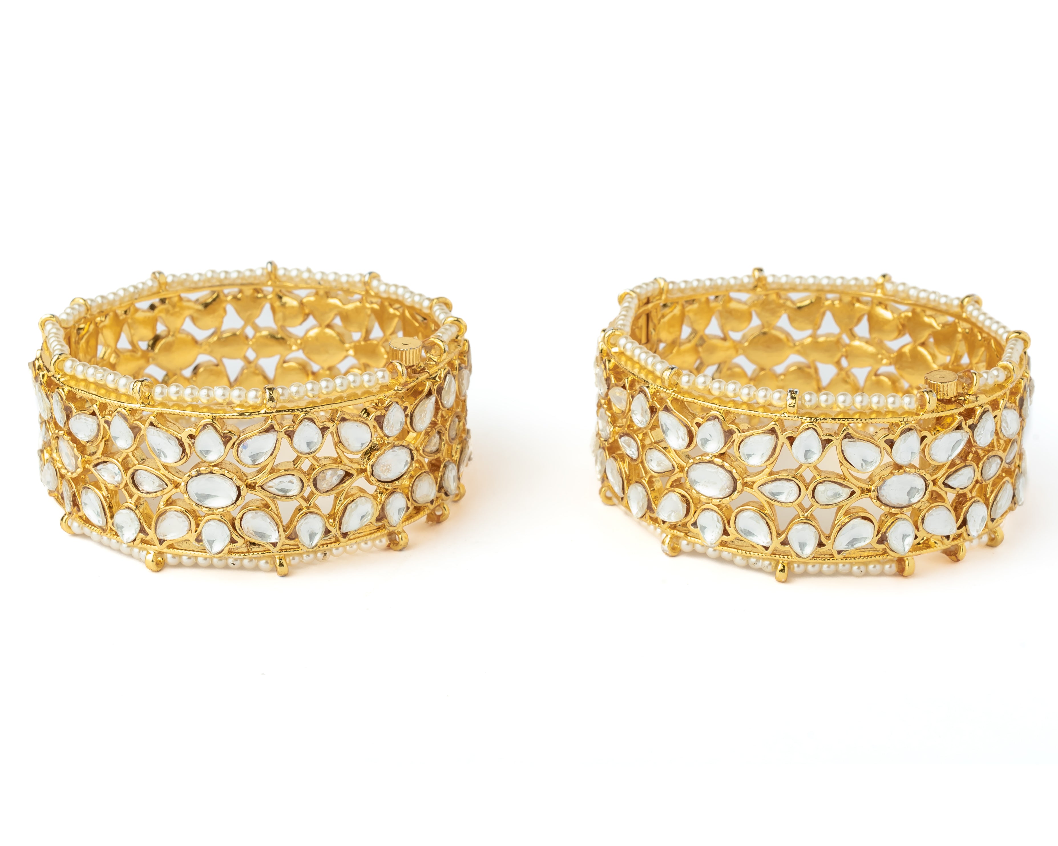 Gold Plated Womens Kundan, Polki Pair of Bangles