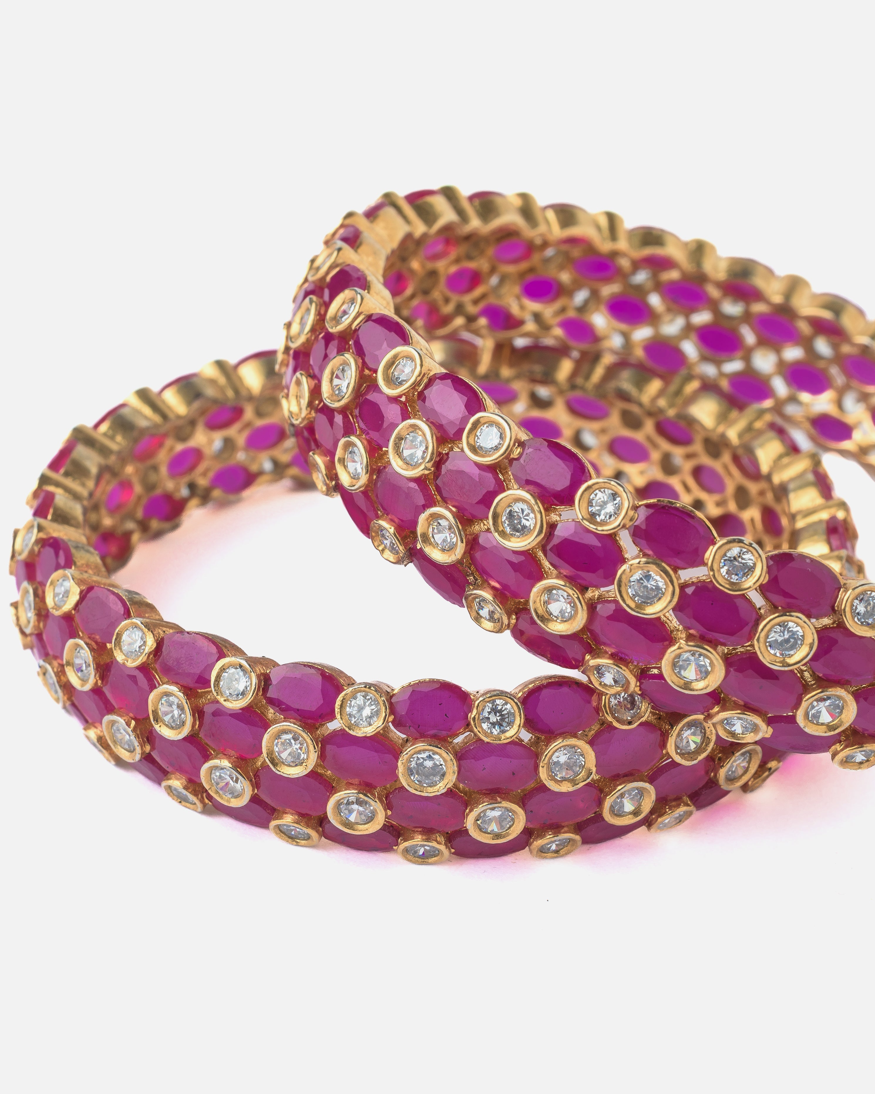 - Premium Craftsmanship: Intricately designed gold-plated bangles with detailed stone settings.
