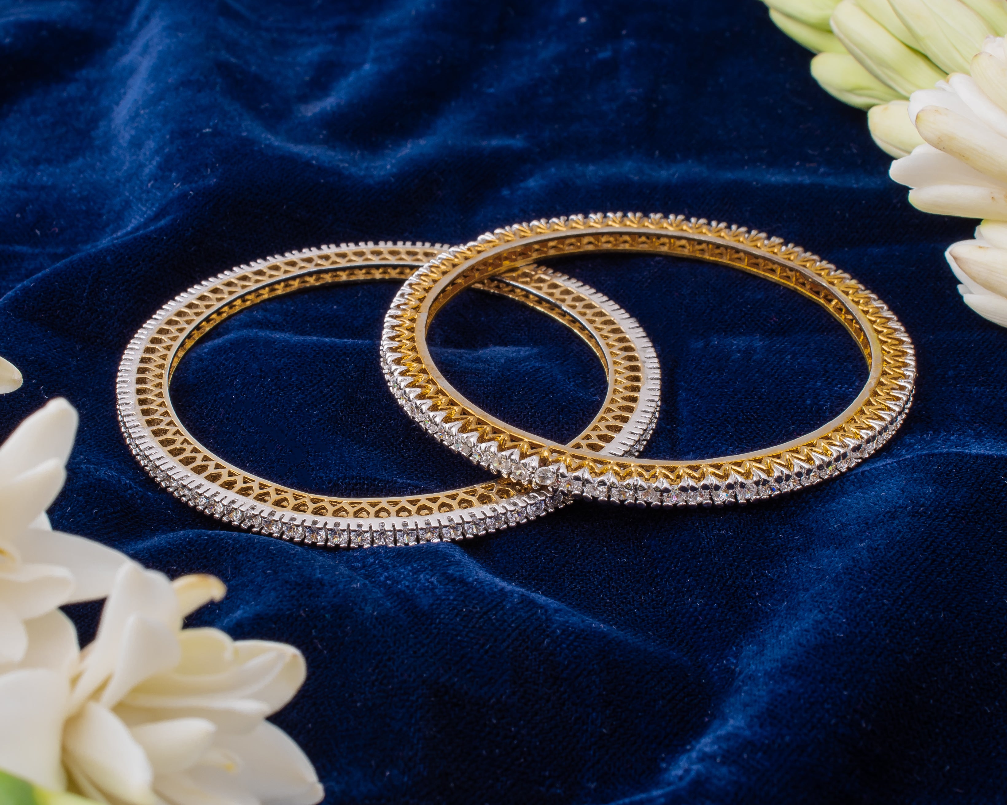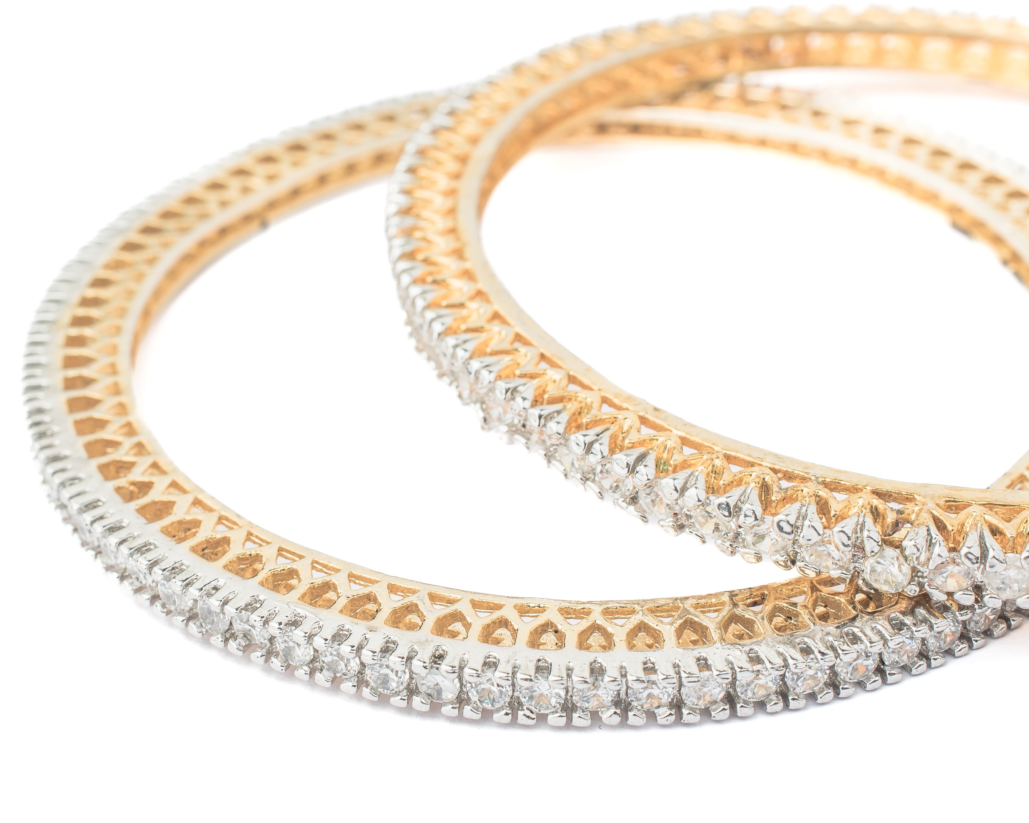 Zia Gold Plated White Womens Zircon Pair of Bangles