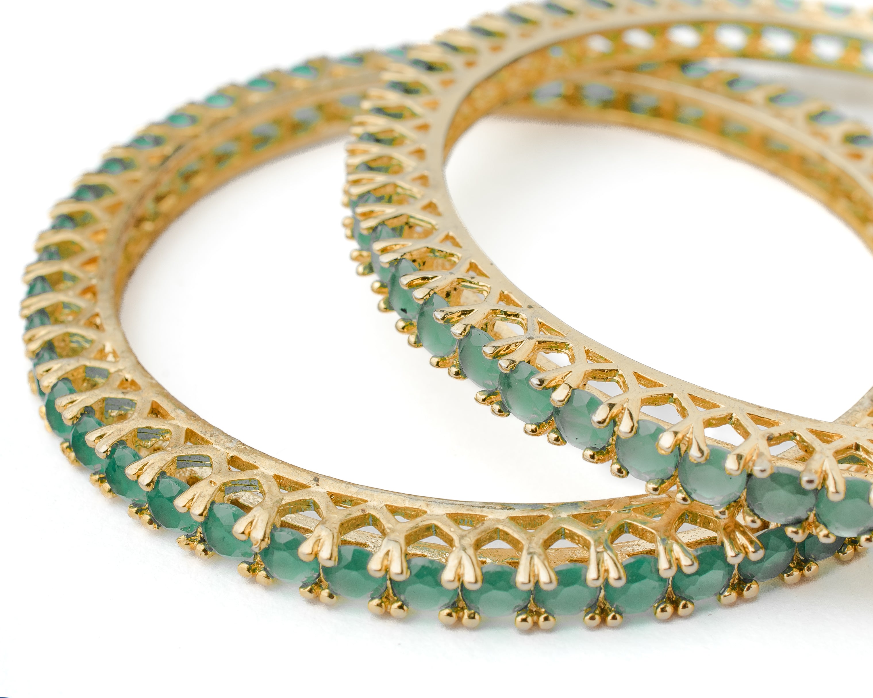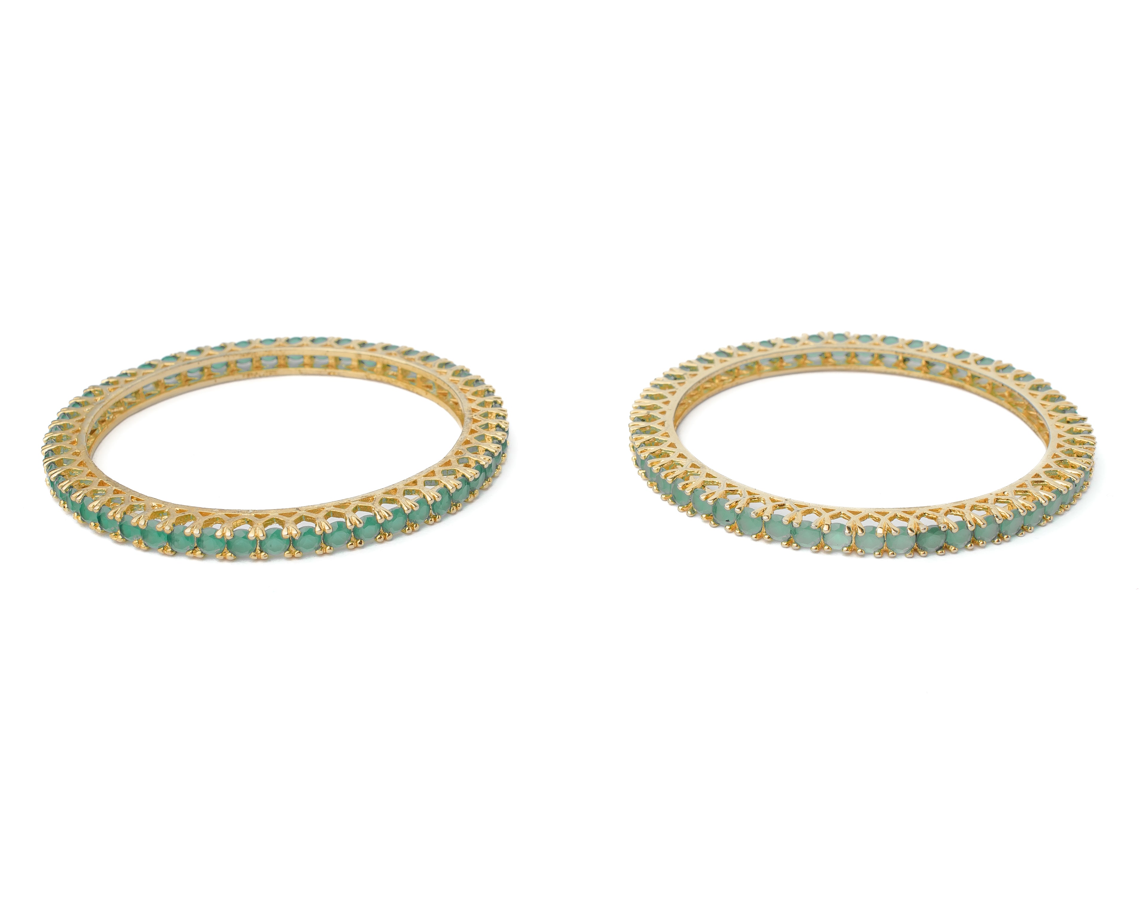 Zia 2.0 Gold Plated Green Womens Zircon a Pair of Bangles