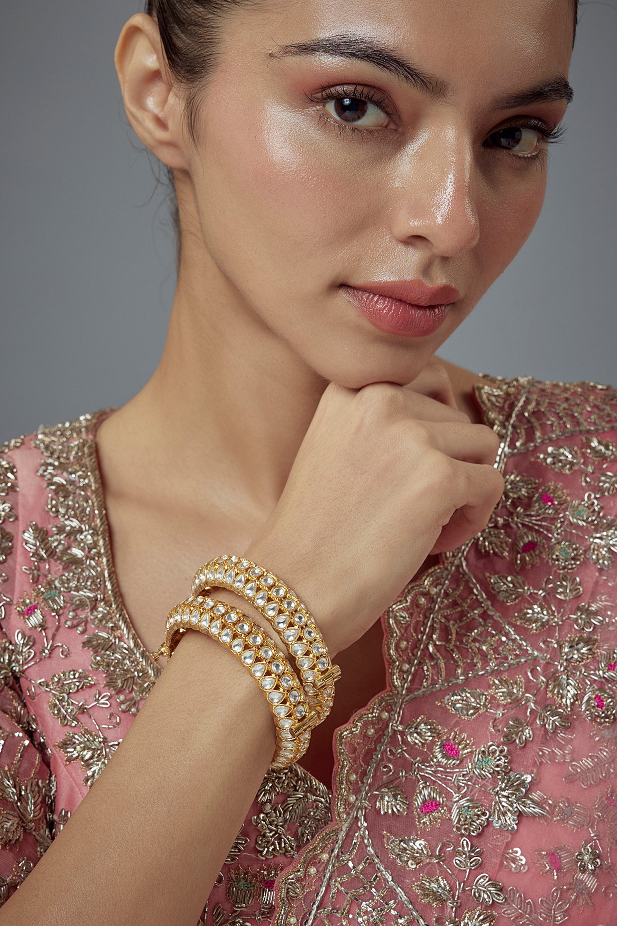 Saadgi Gold Plated Kundan, Polki Womens Pair of Bangle
