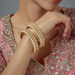 Elegant gold-tone bangles adorned with sparkling stones,perfect for any occasion.Lightweight & stylish,bangles designed for comfort & durability.Ideal for gifting or enhancing your jewelry collection.