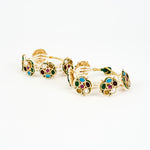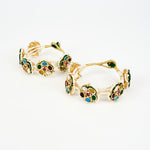 - Vibrant Design: Features multi-coloured gemstones in bold hues, framed with intricate gold accents.