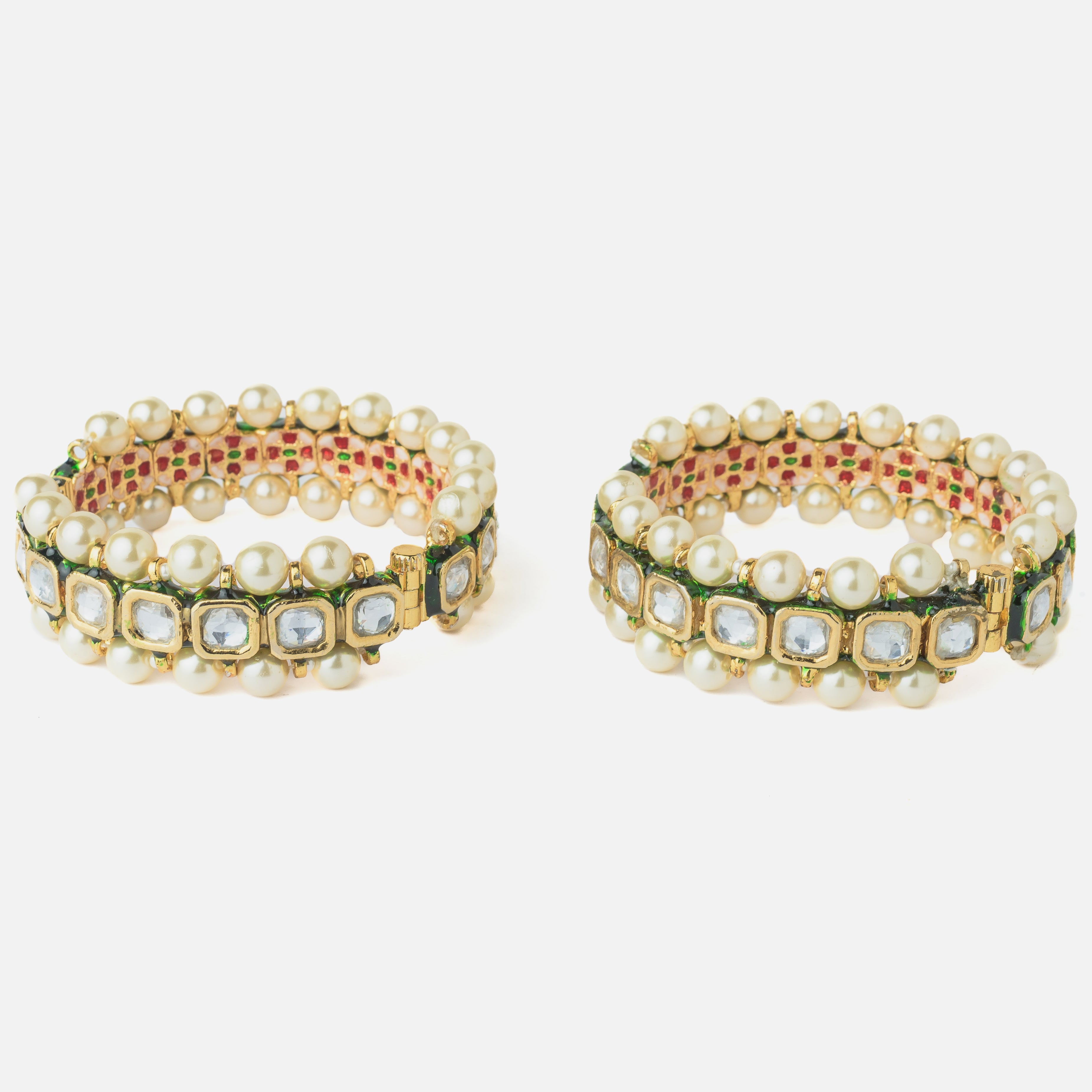 Florence Gold Plated Green Womens Kundan, Polki Pair of Bangles