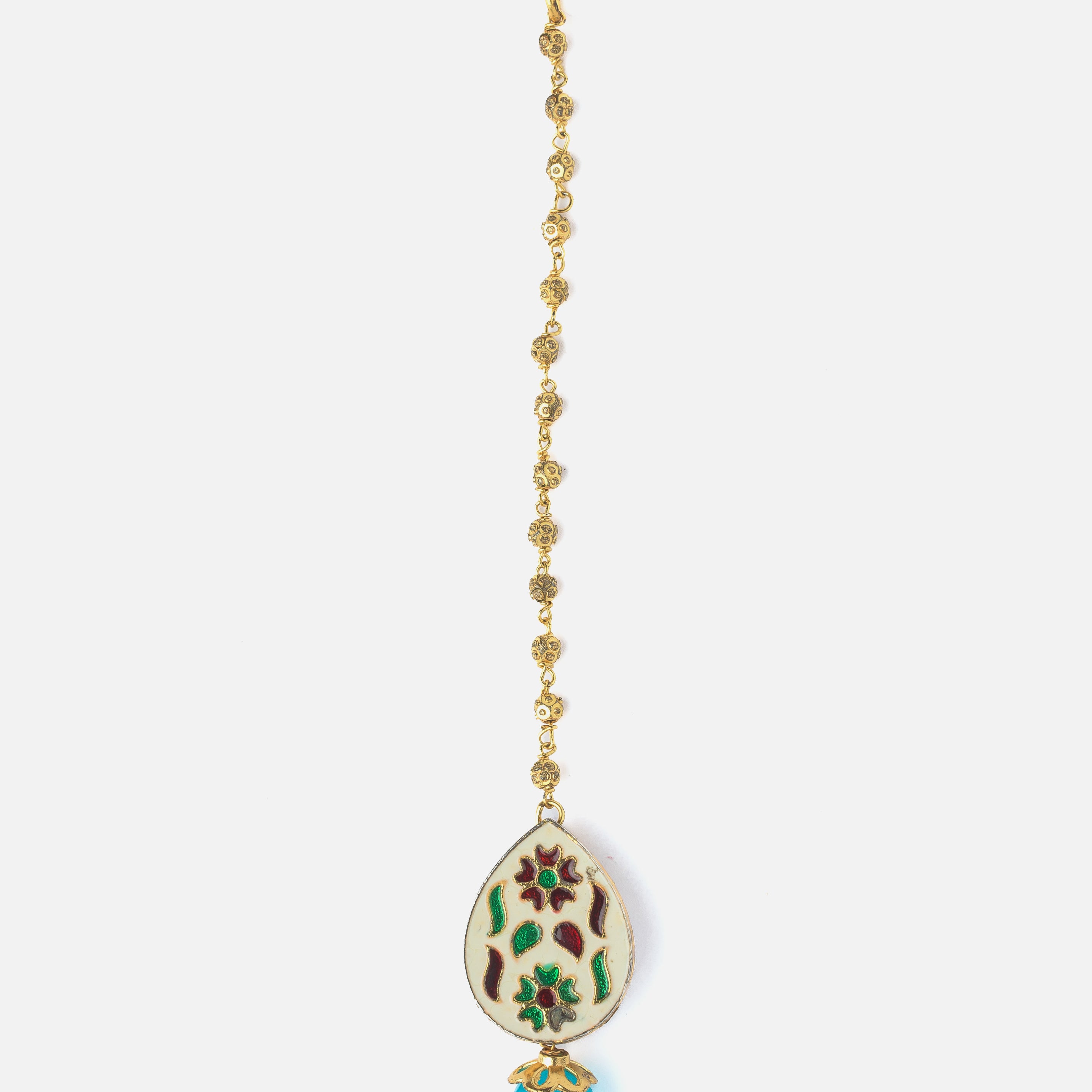 Gold Plated Blue Womens Beaded Maangtikka