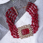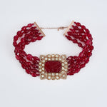 Antara Gold Plated Red Womens Beaded Choker Necklace Set
