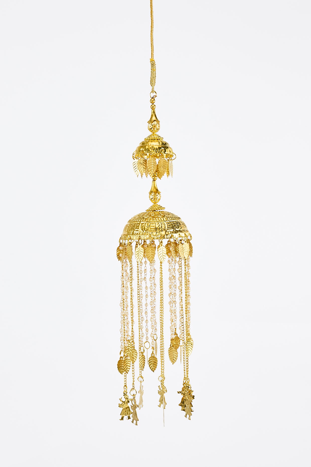 • Intricate Design: Features detailed gold craftsmanship with hanging leaf and pearl embellishments for a traditional yet elegant look.