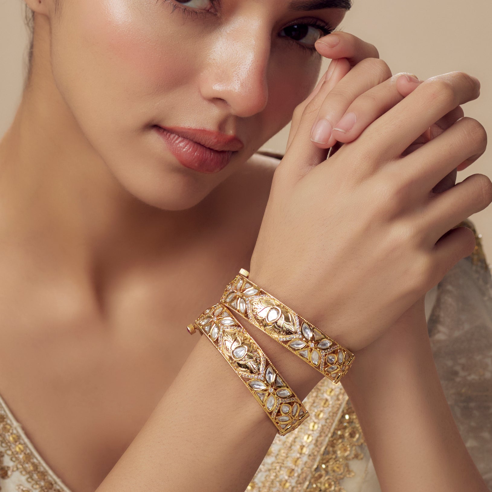 Saadgi Gold Plated White Kundan, Polki Womens Pair of Bangle