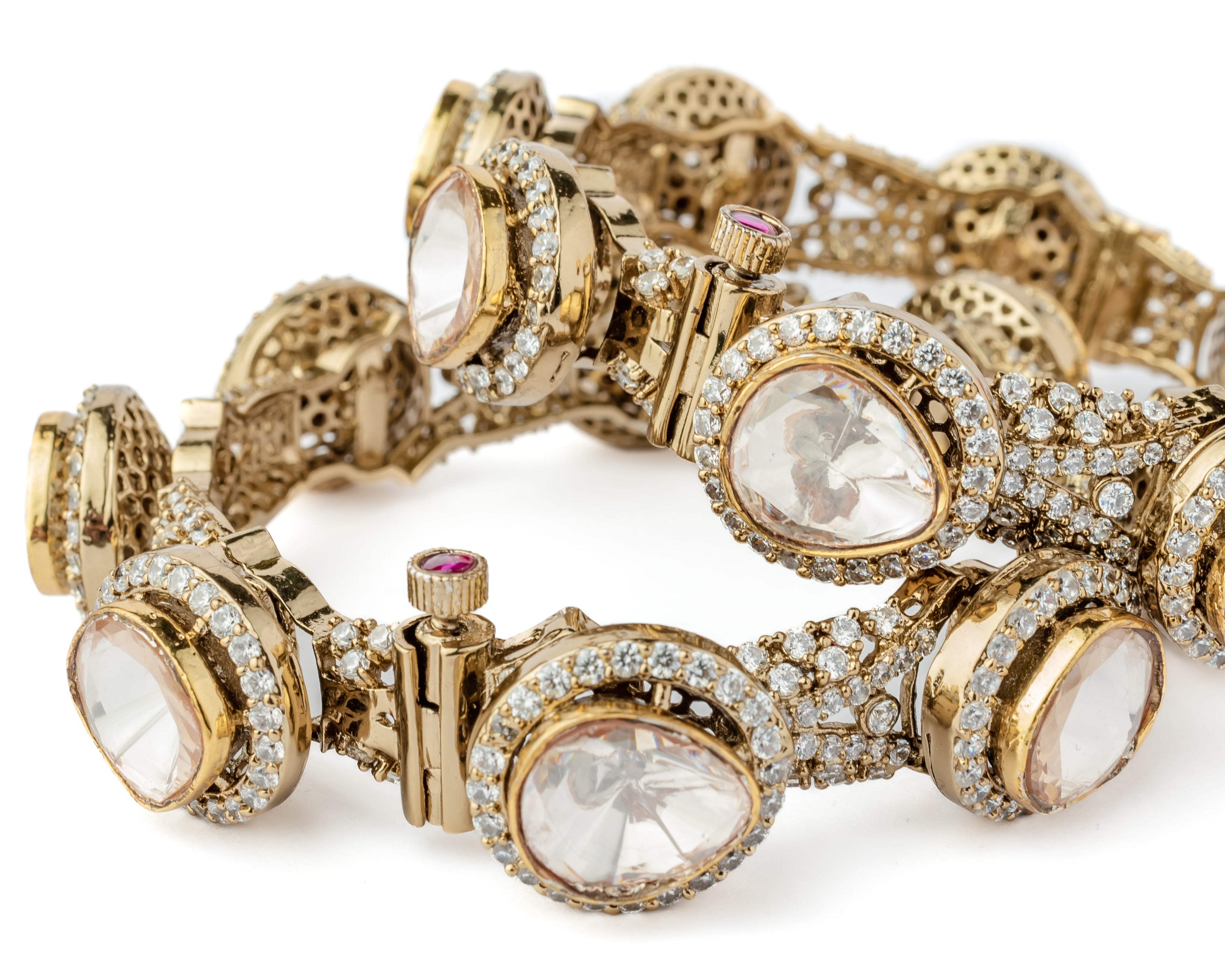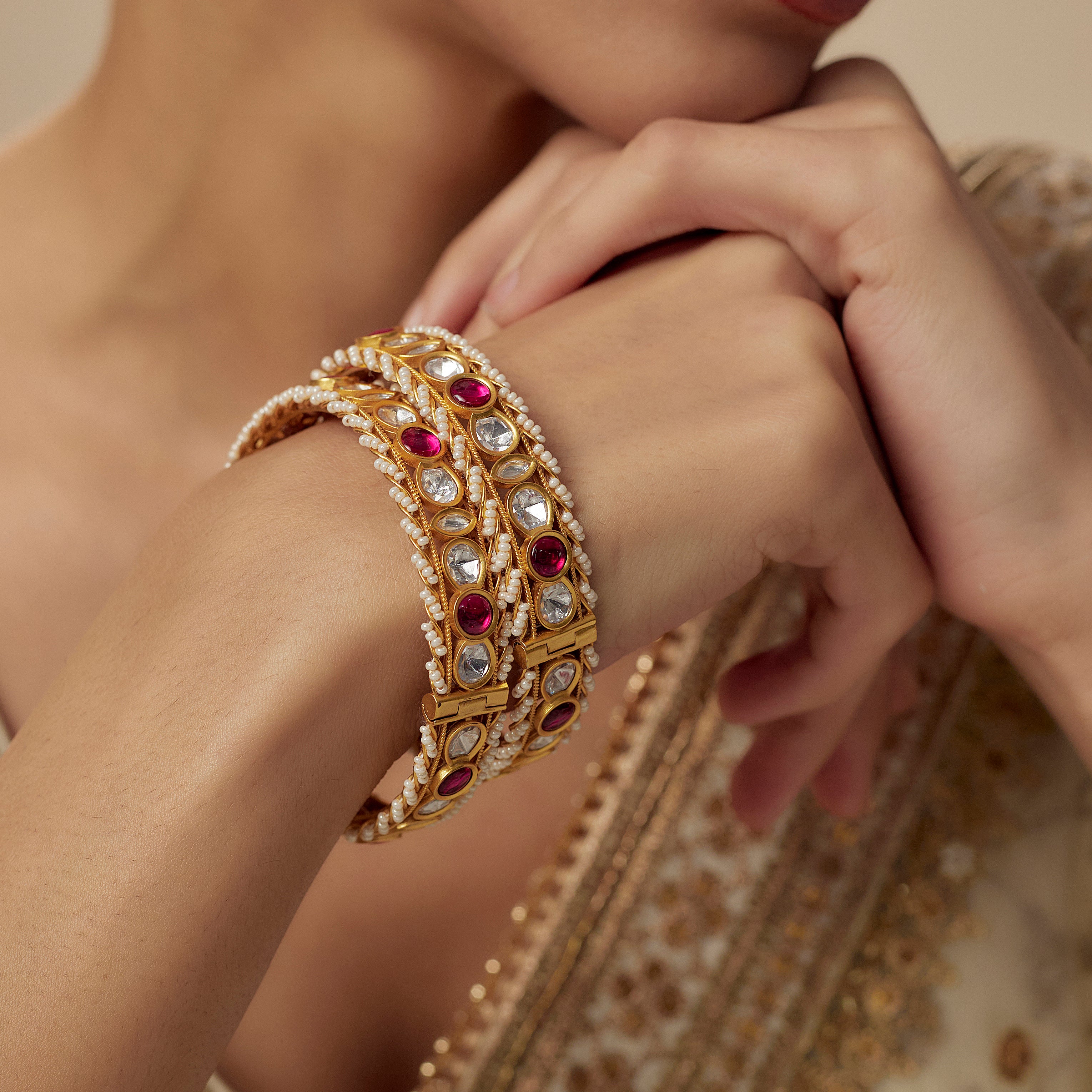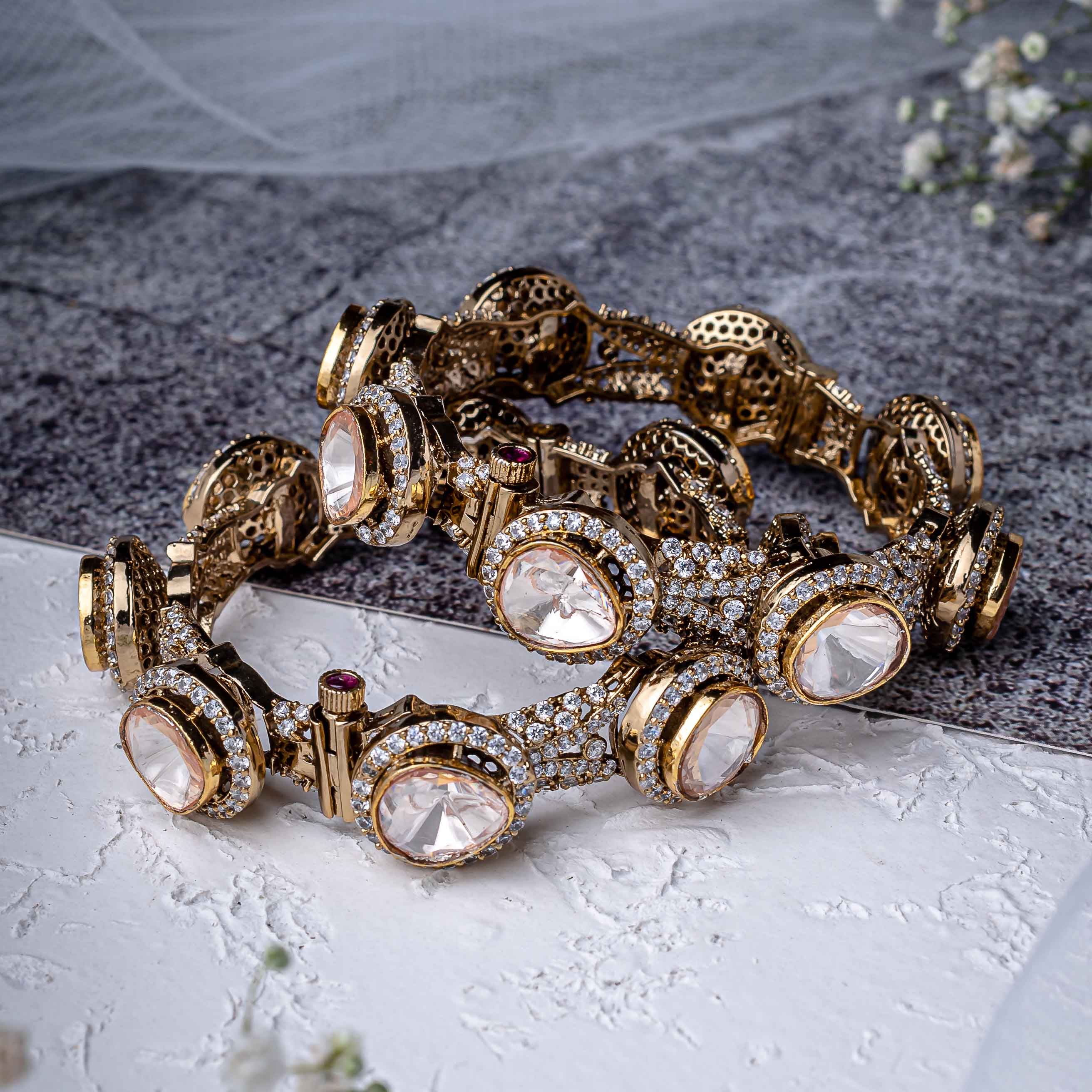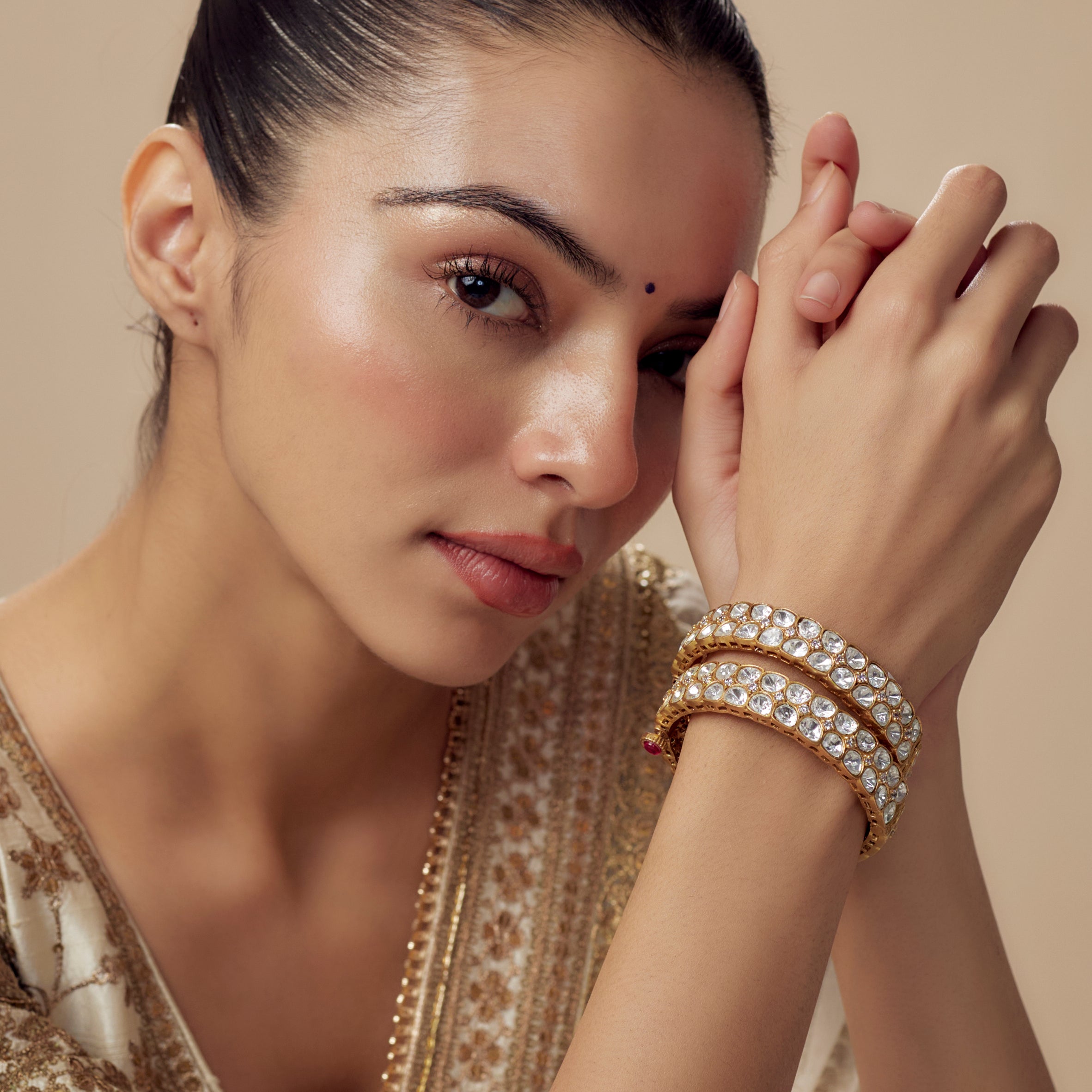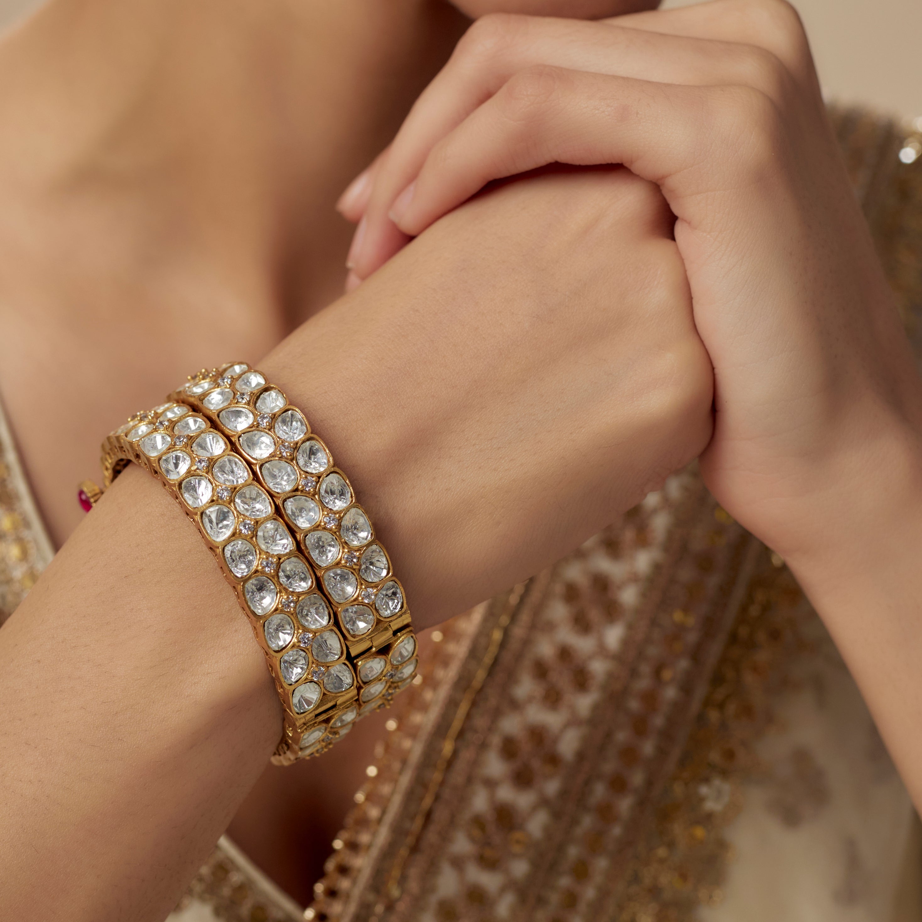 Gold Plated Womens Kundan, Polki Pair of Bangles