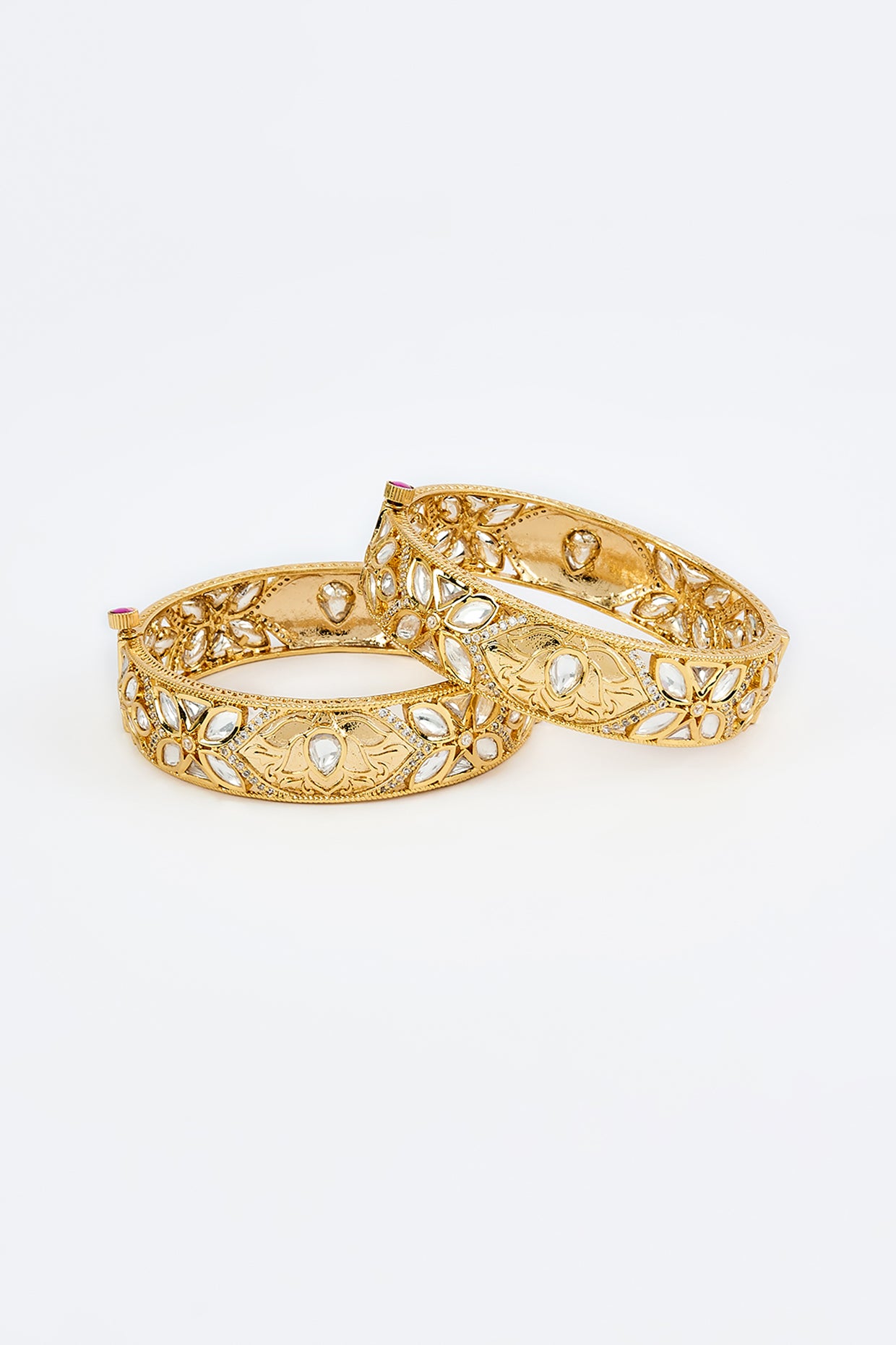 Saadgi Gold Plated White Womens Kundan, Polki Pair of Bangles