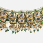 - Traditional Kundan Work: Features classic teardrop-shaped Kundan stones set in an intricate floral pattern.