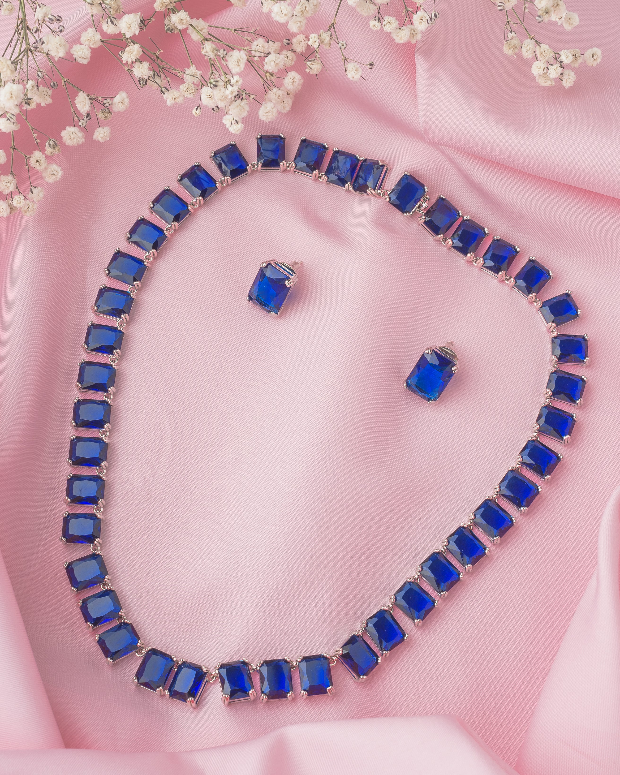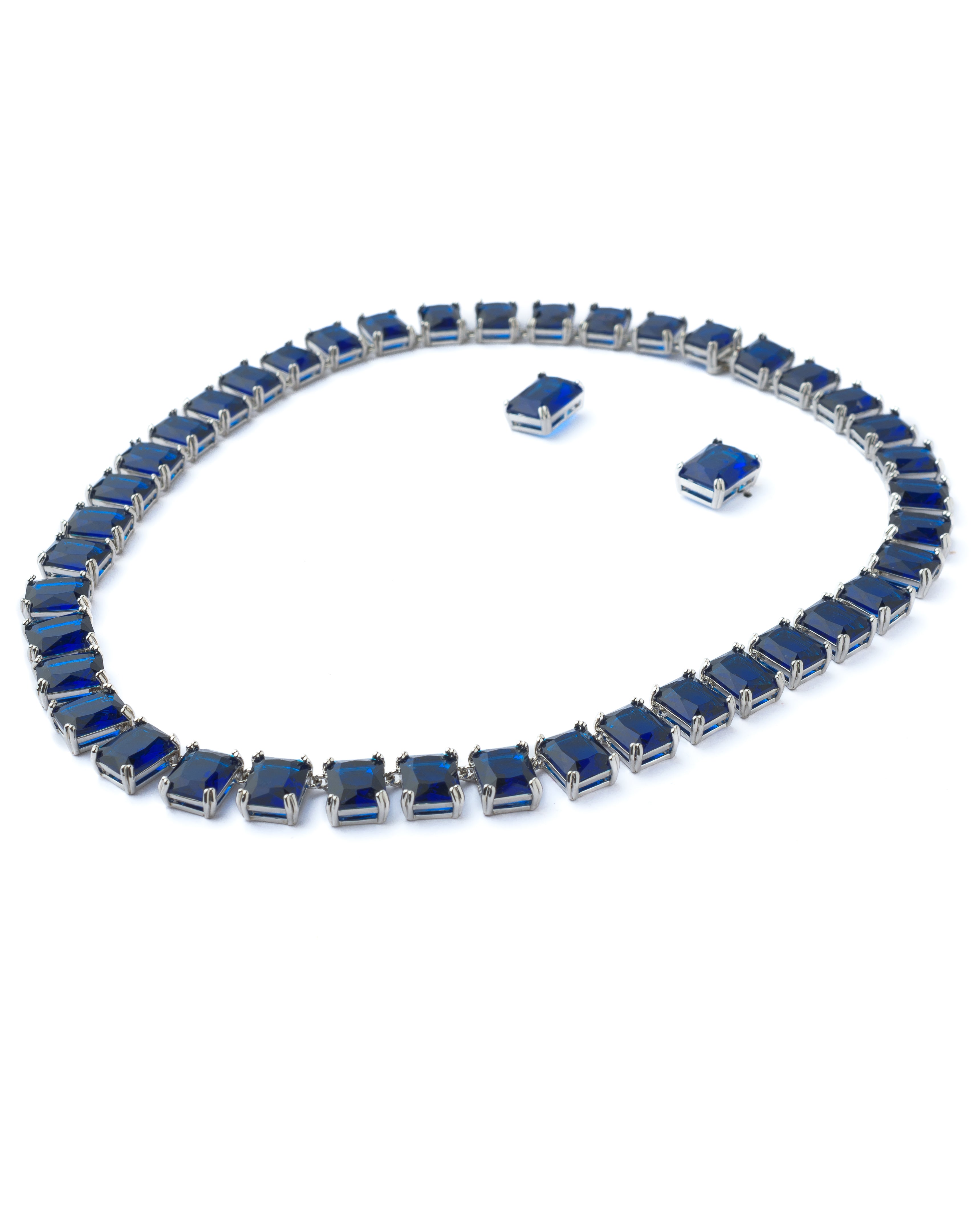 Stunning blue stone necklace set with matching earrings. Elegant and timeless design, perfect for parties, weddings, or evening wear. Adds a touch of luxury and charm to any outfit effortlessly.