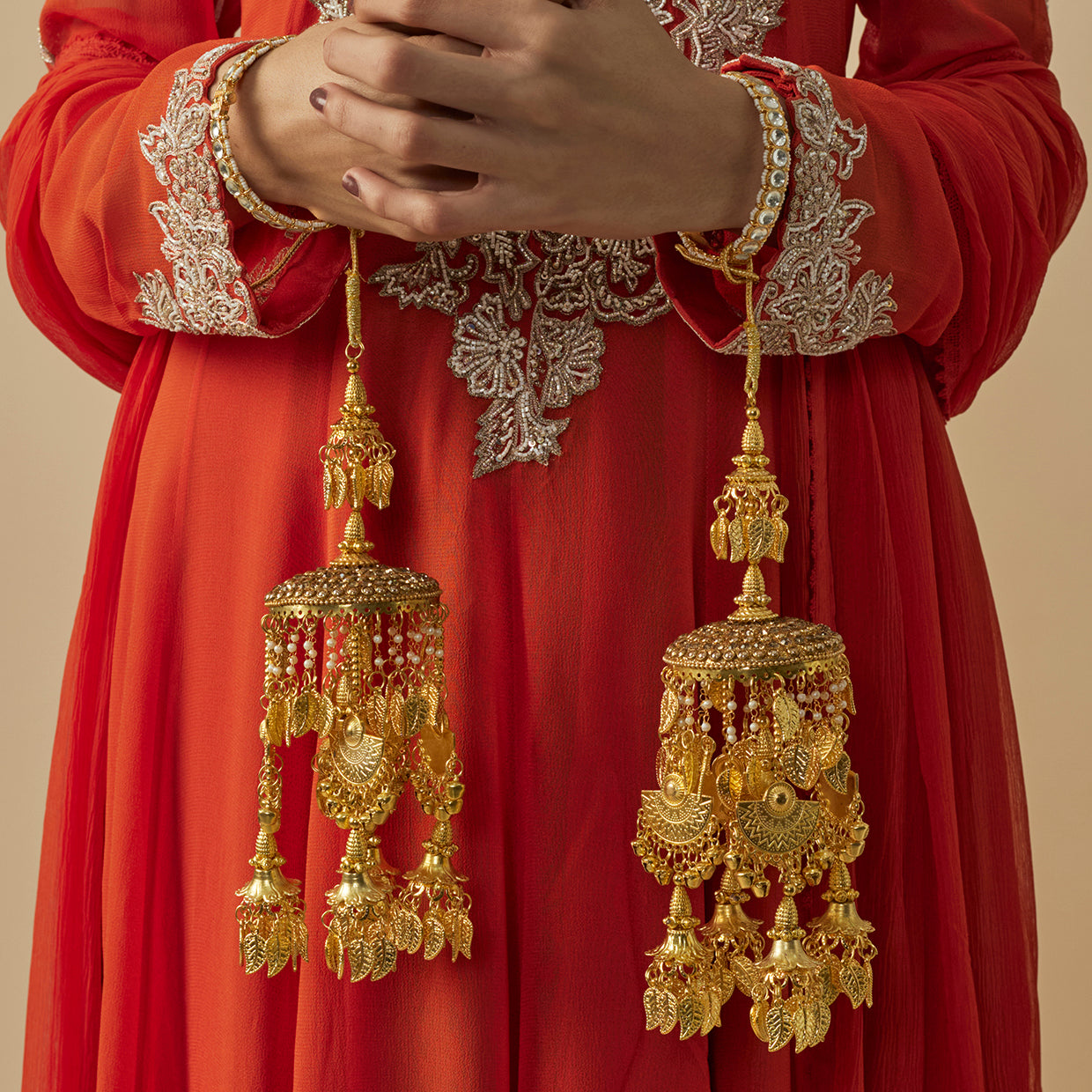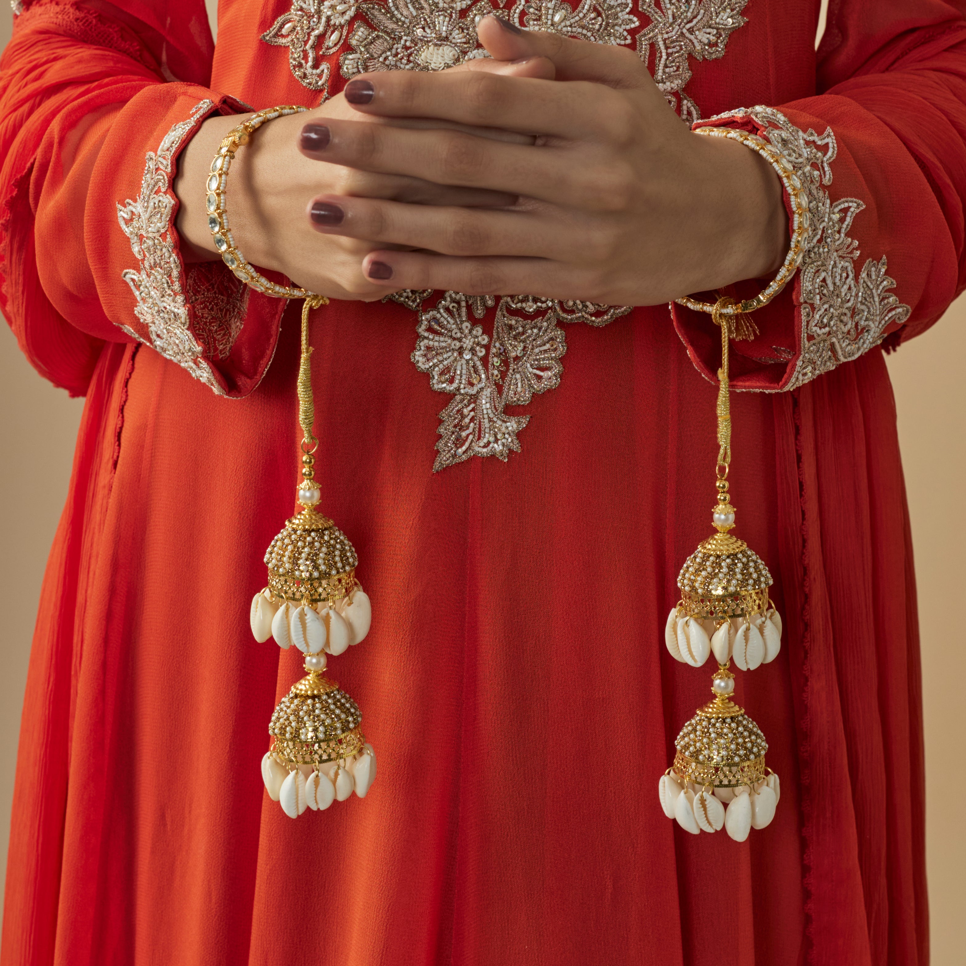 Gold Plated Womens Kundan, Polki Pair of Kaleeras
