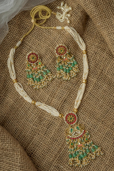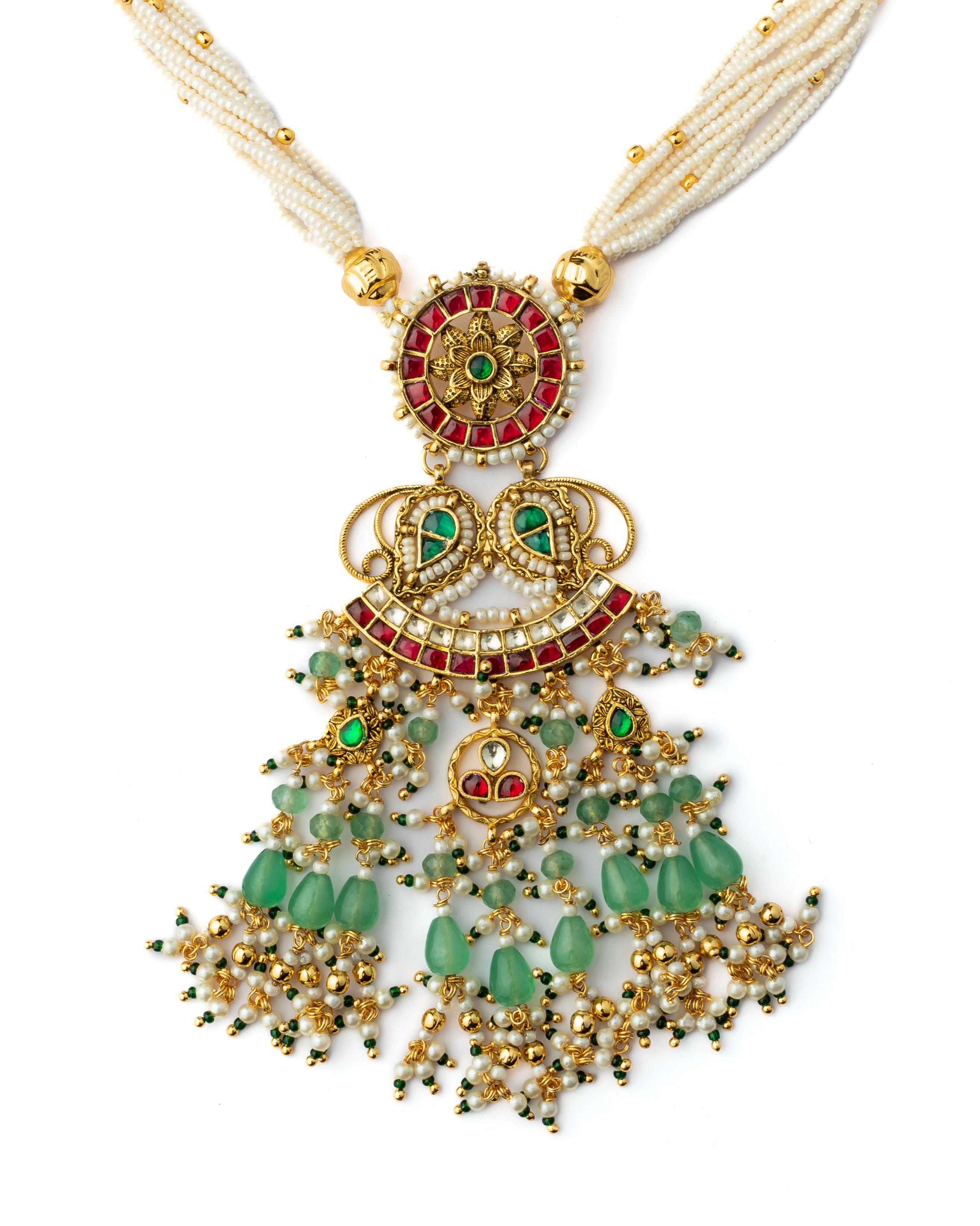 Inaayat Gold Plated Womens Kundan, Polki Long Necklace set (Freesize)