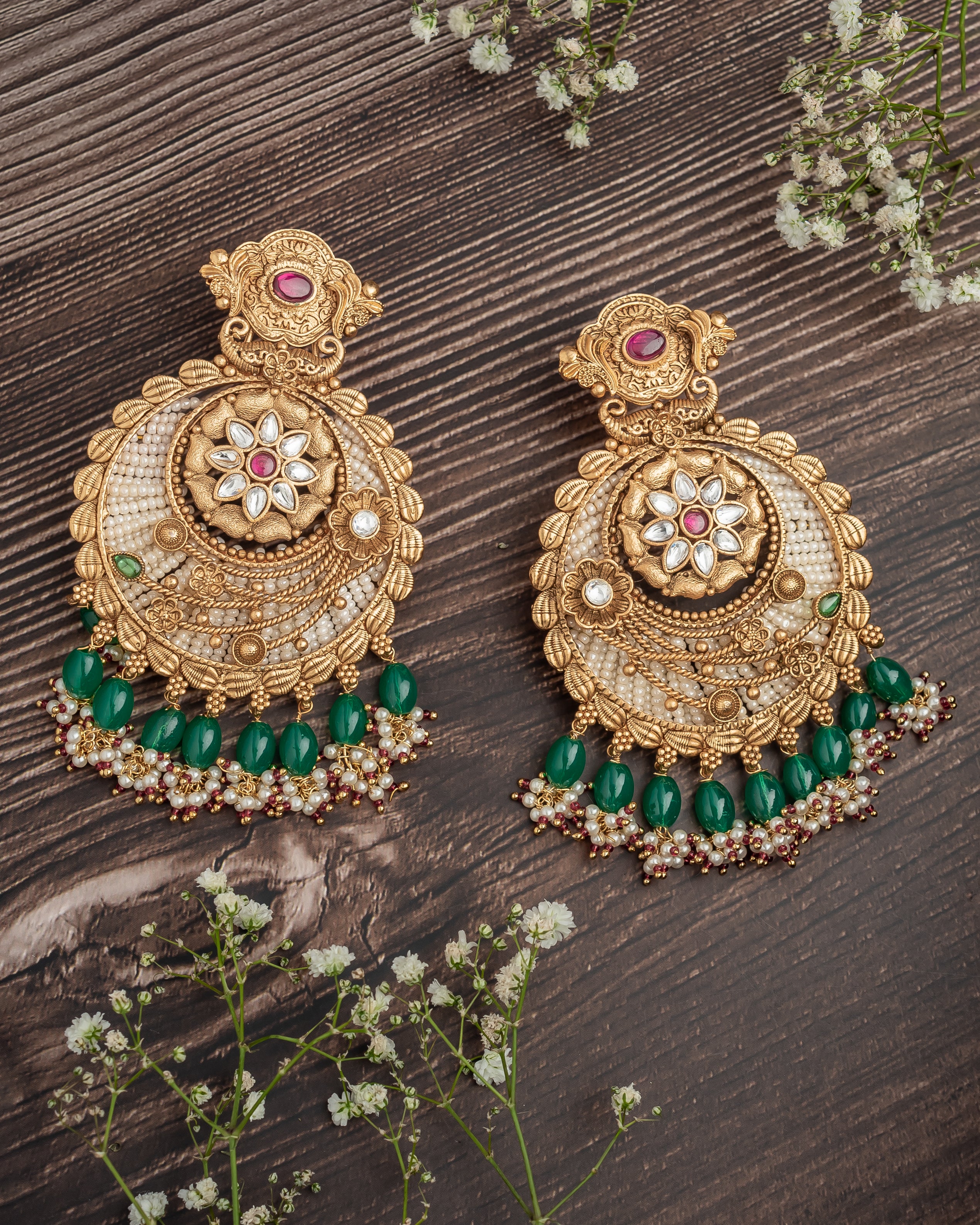 - Emerald Bead Dangling Accents: Green bead drops add a vibrant pop of color and sophistication.