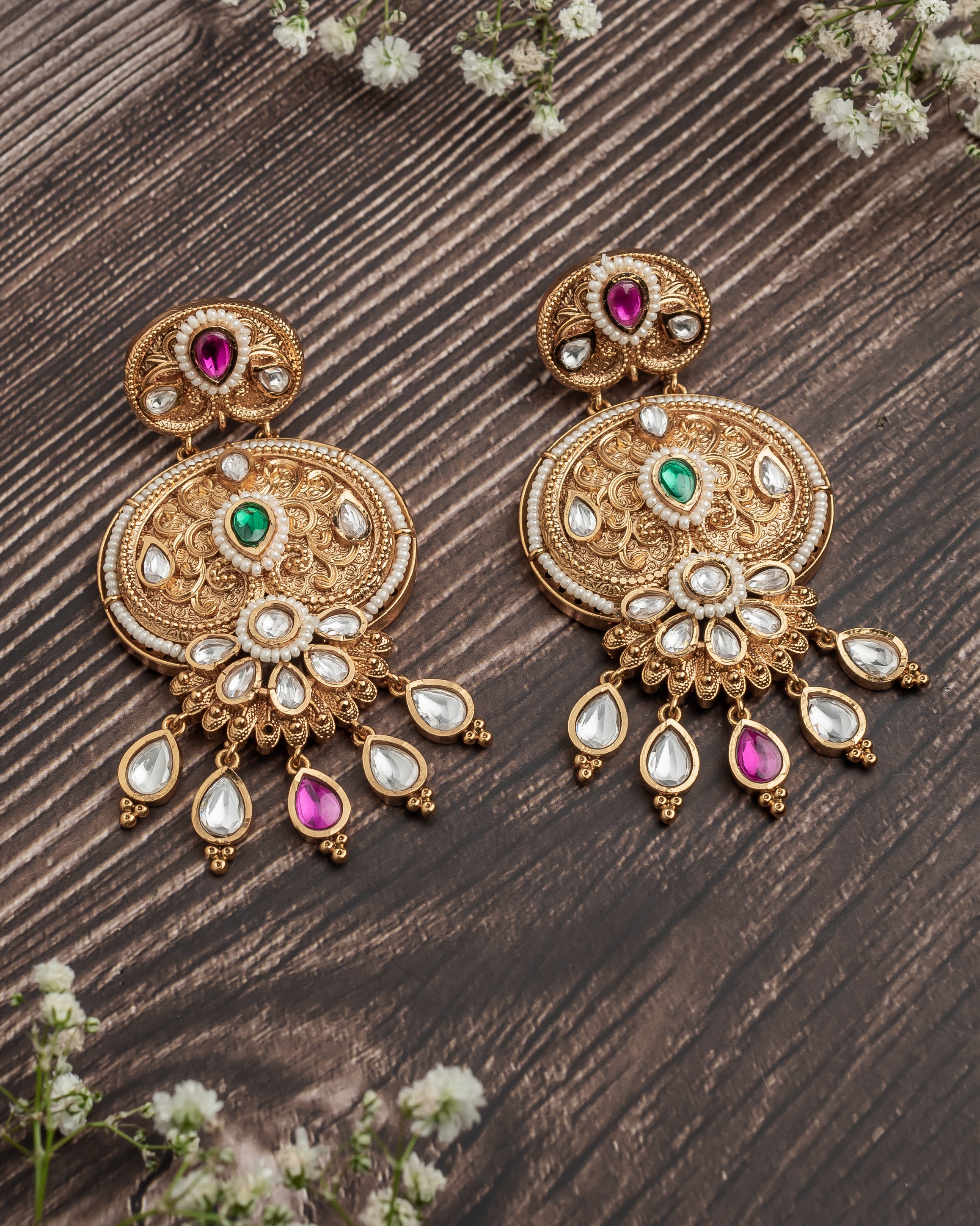 Isvaraah 2.0 Gold Plated Multicolored Womens Pair of Chandbali Earrings