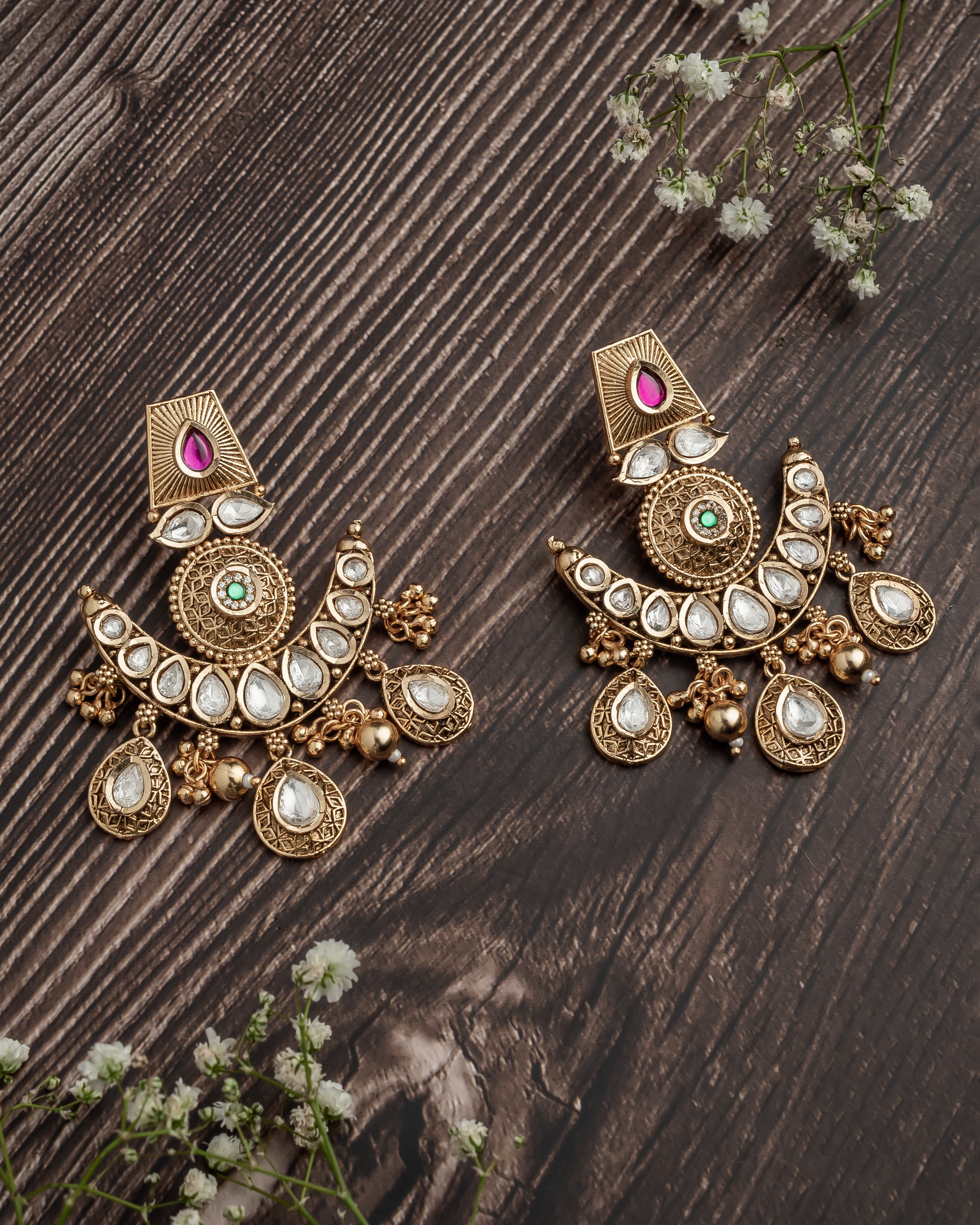 - Antique Gold Finish: Adds a regal and vintage touch to the earrings.
