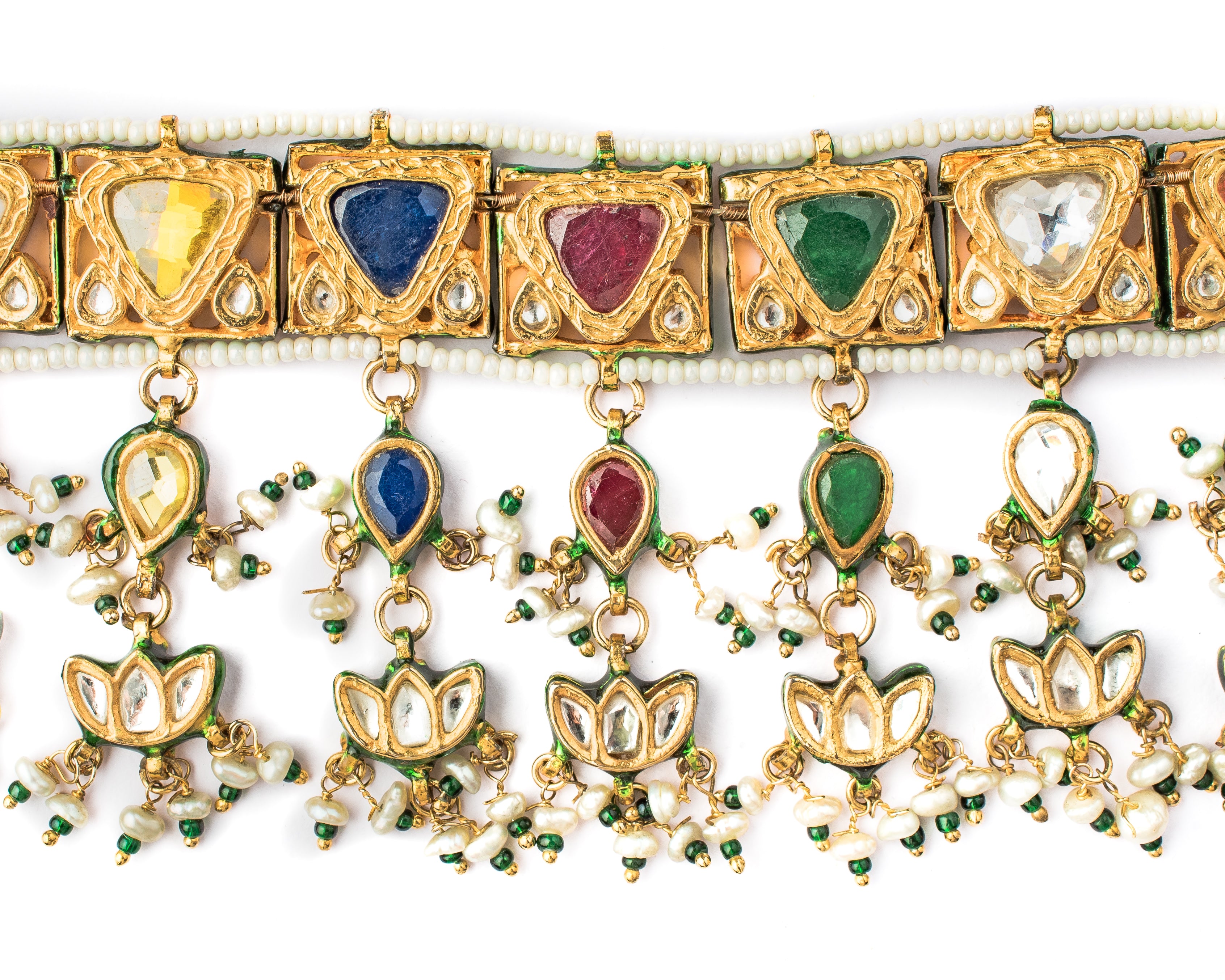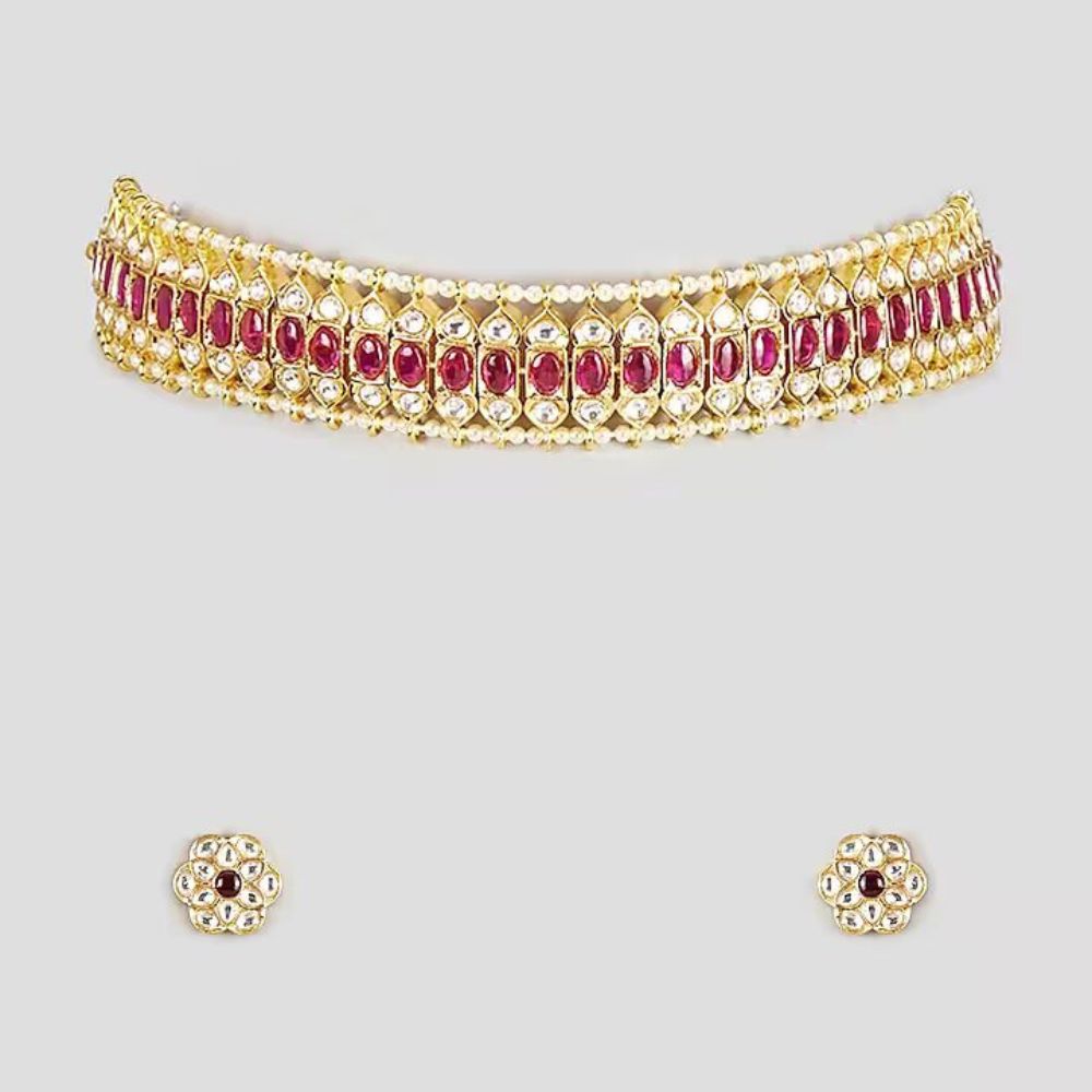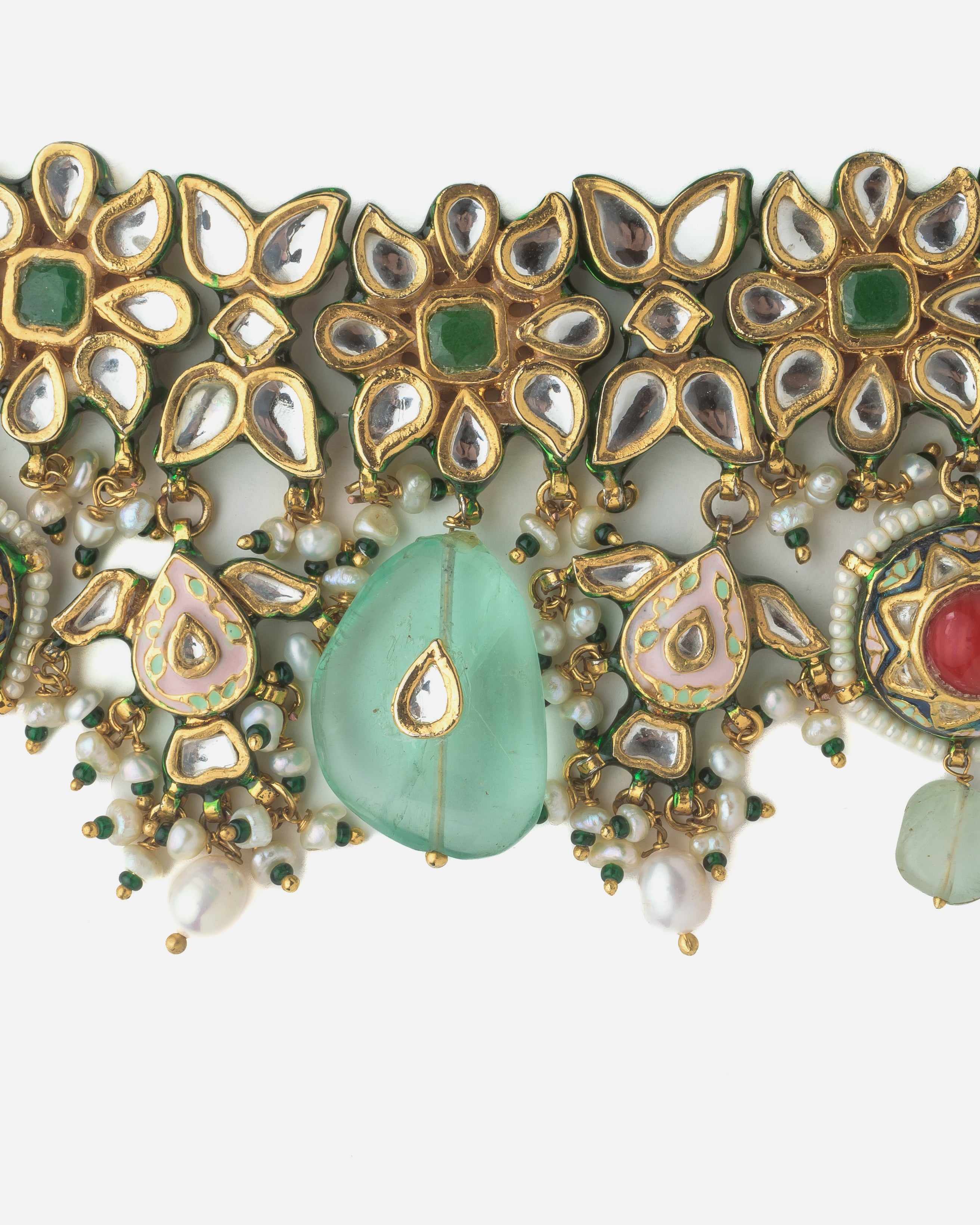Gold Plated Multicolored Womens Kundan Choker Necklace