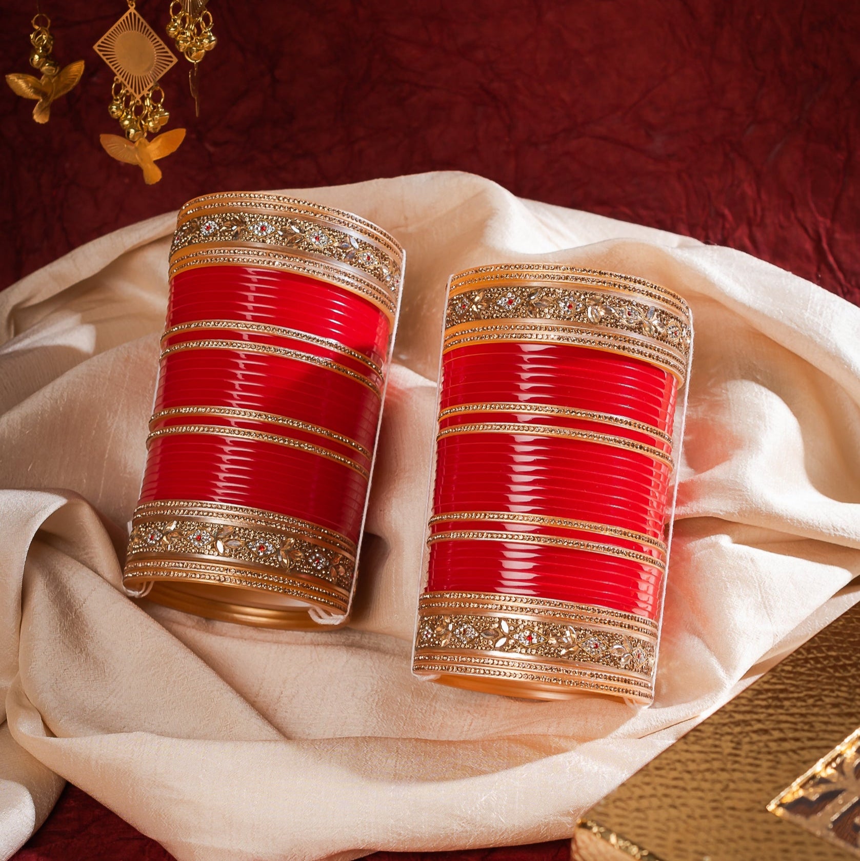 - Traditional Bridal Chuda – A classic red and gold chuda set, symbolizing prosperity and love for brides.
