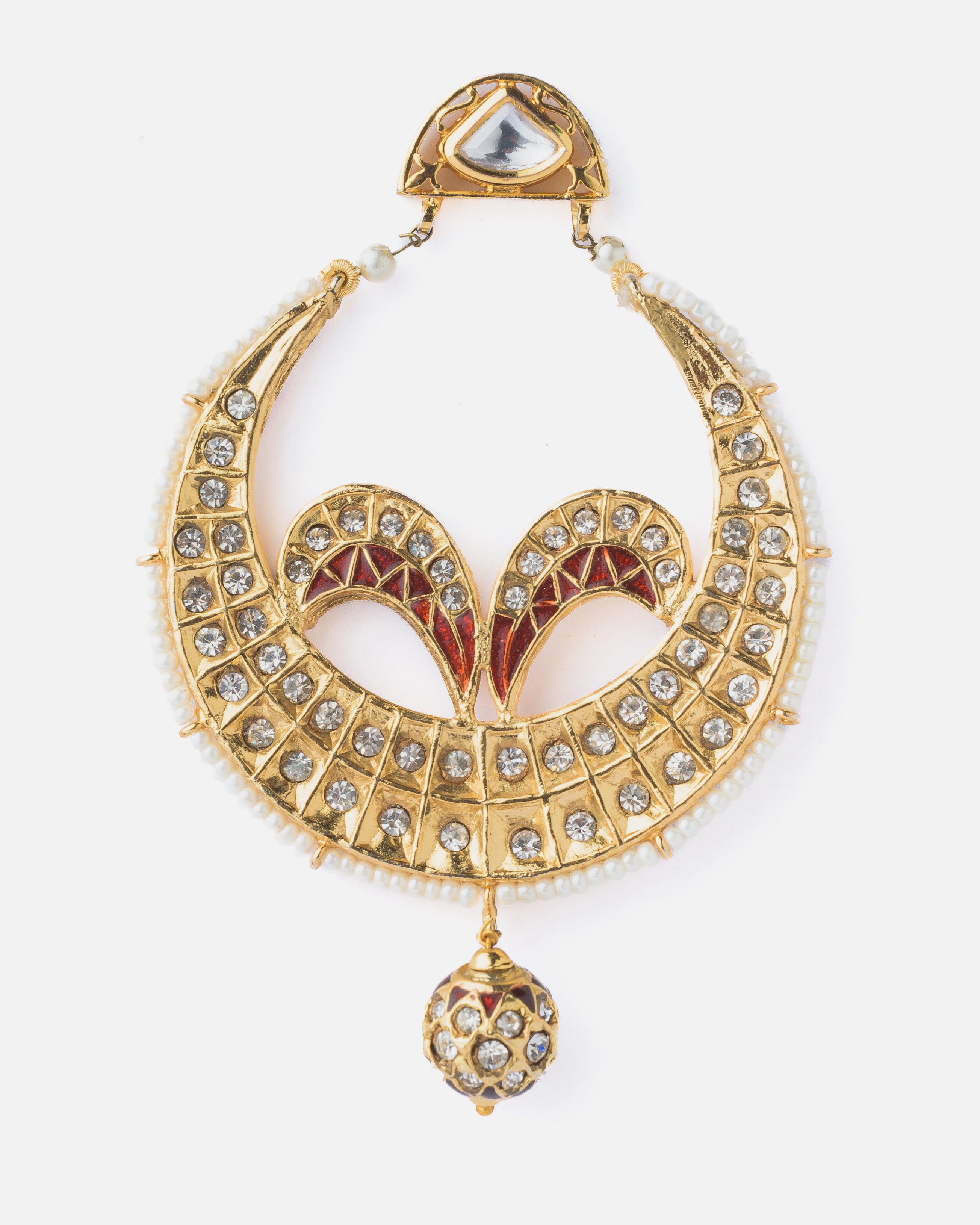 - Traditional Design: Features a crescent-shaped structure with intricate detailing and a fusion of ethnic patterns, ideal for festive and bridal wear.