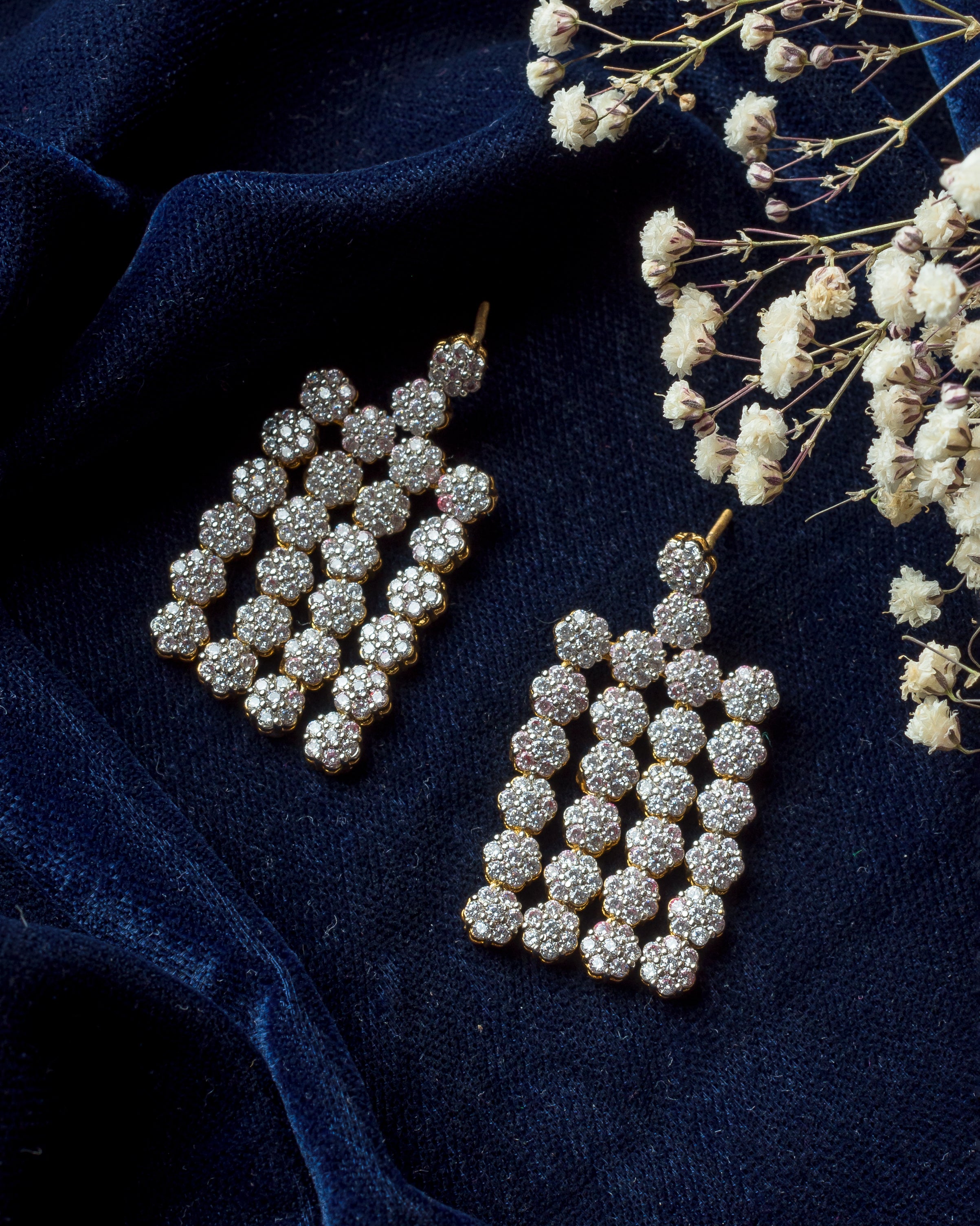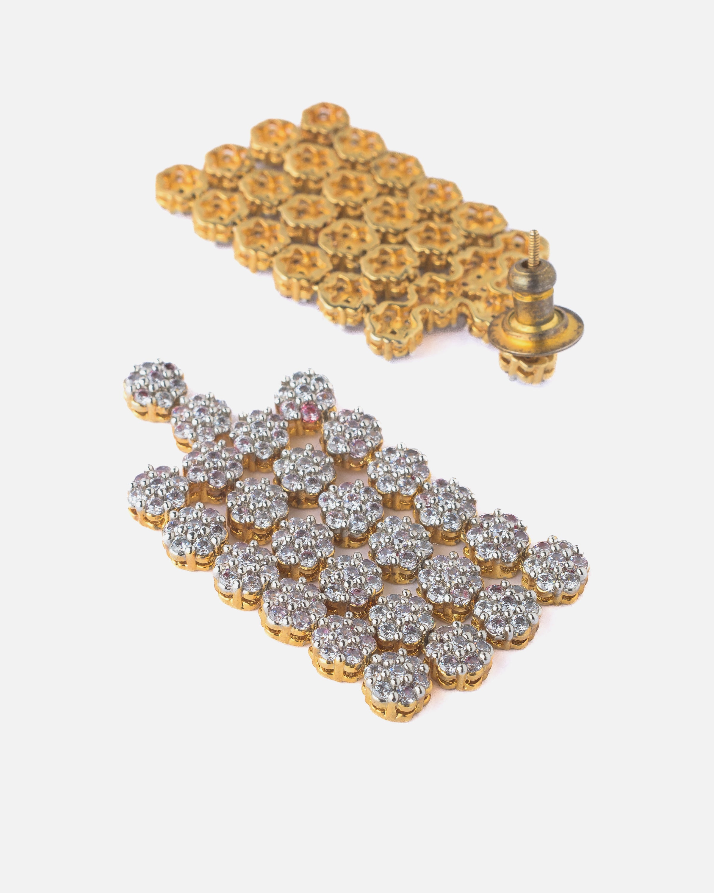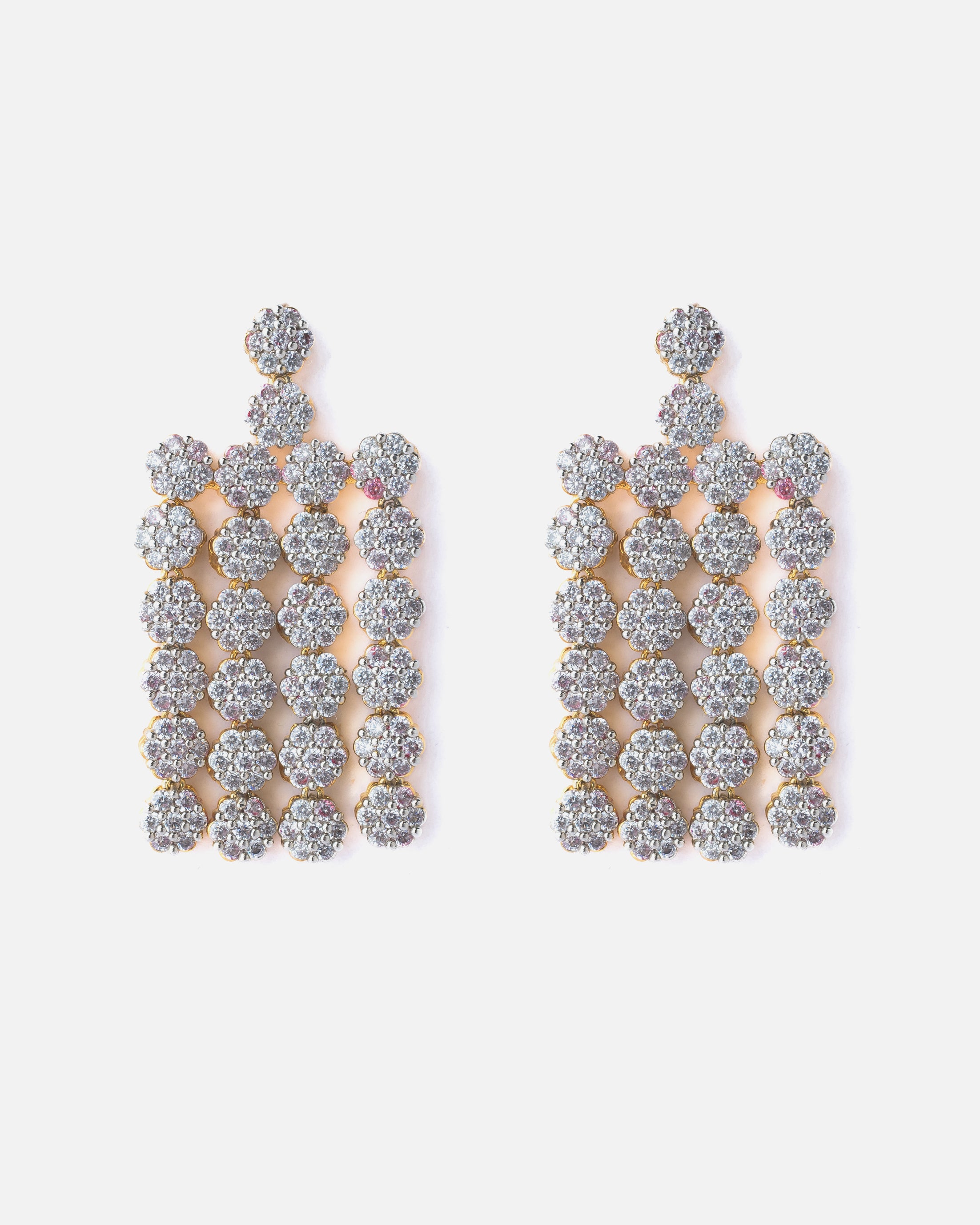 Shine bright with these dazzling crystal-cluster earrings, arranged in a chic geometric grid. Their bold yet elegant design makes them perfect for evening parties, weddings, or festive occasions.