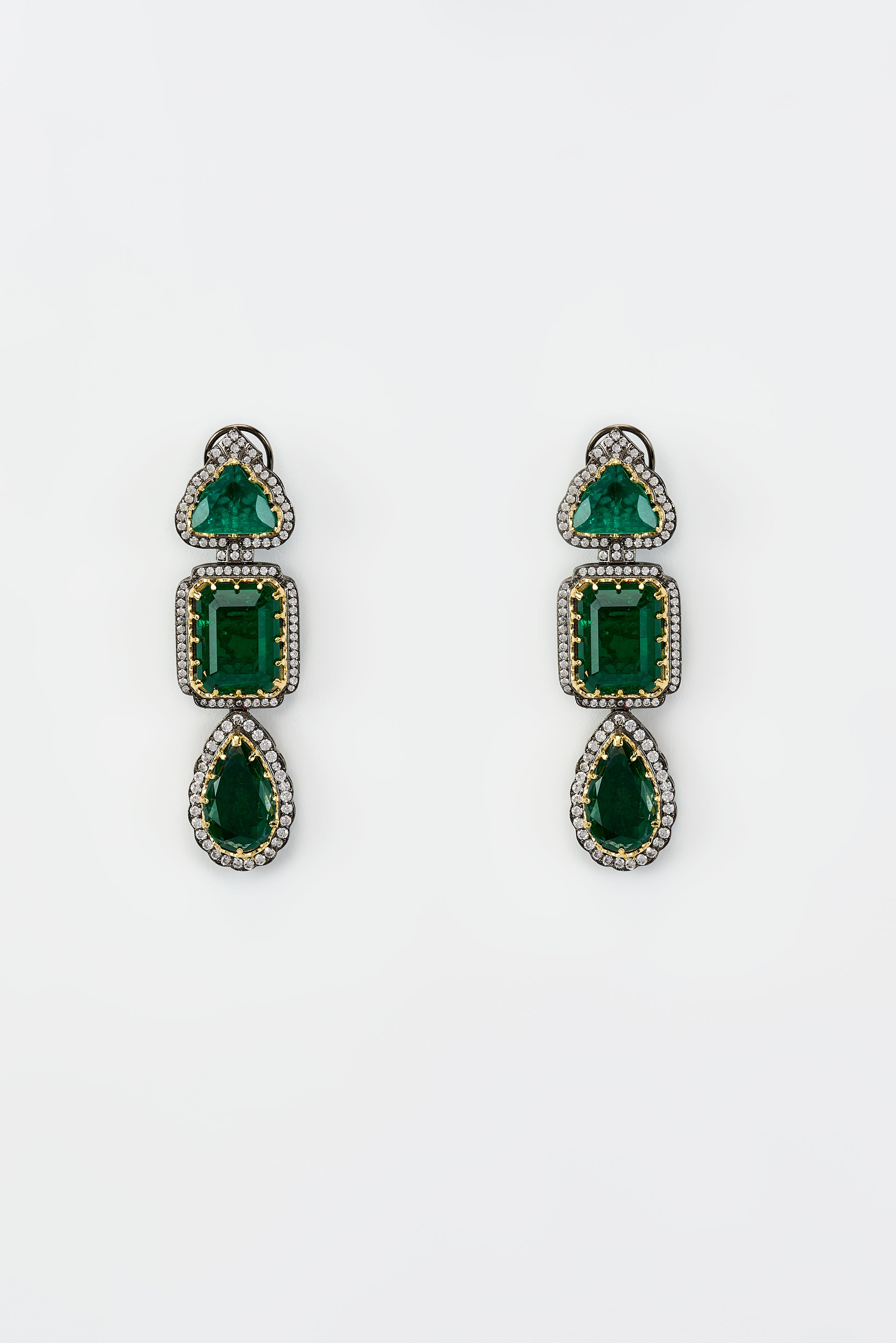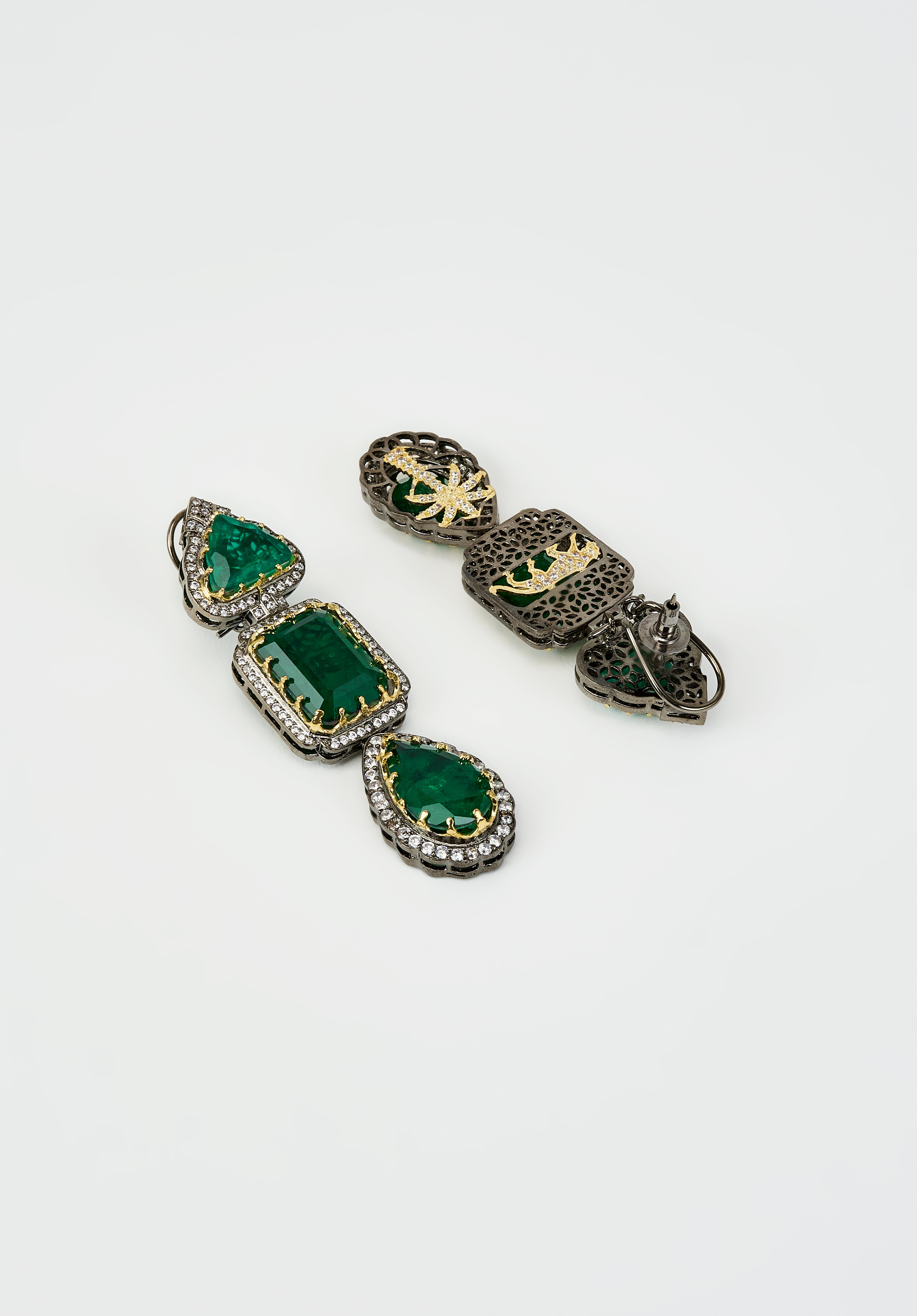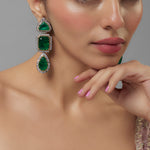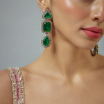 Exquisite green gemstone earrings framed with sparkling crystals. A bold & elegant accessory for weddings, parties, or celebrations. Lightweight, comfortable & perfect for adding glamour to any look.
