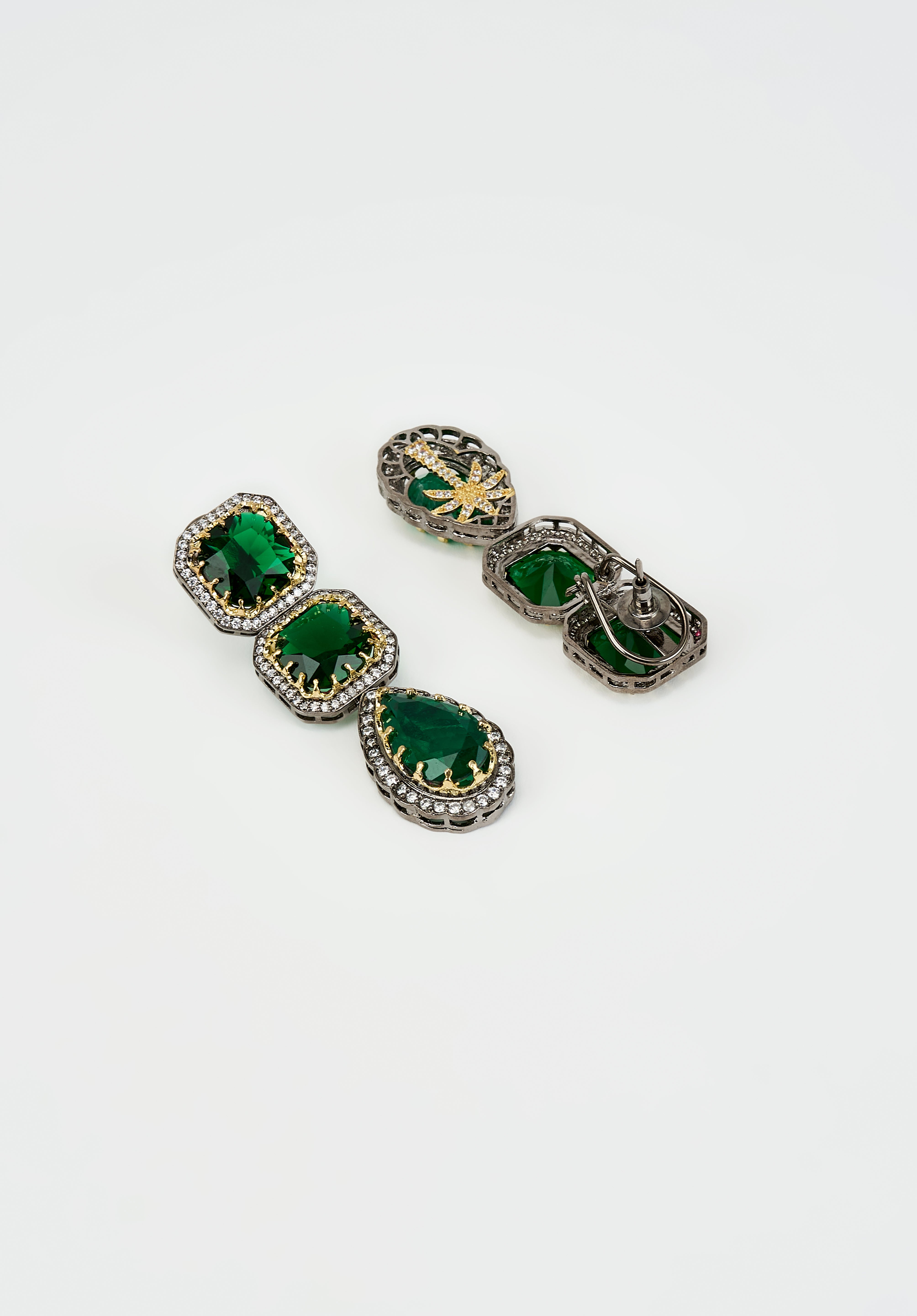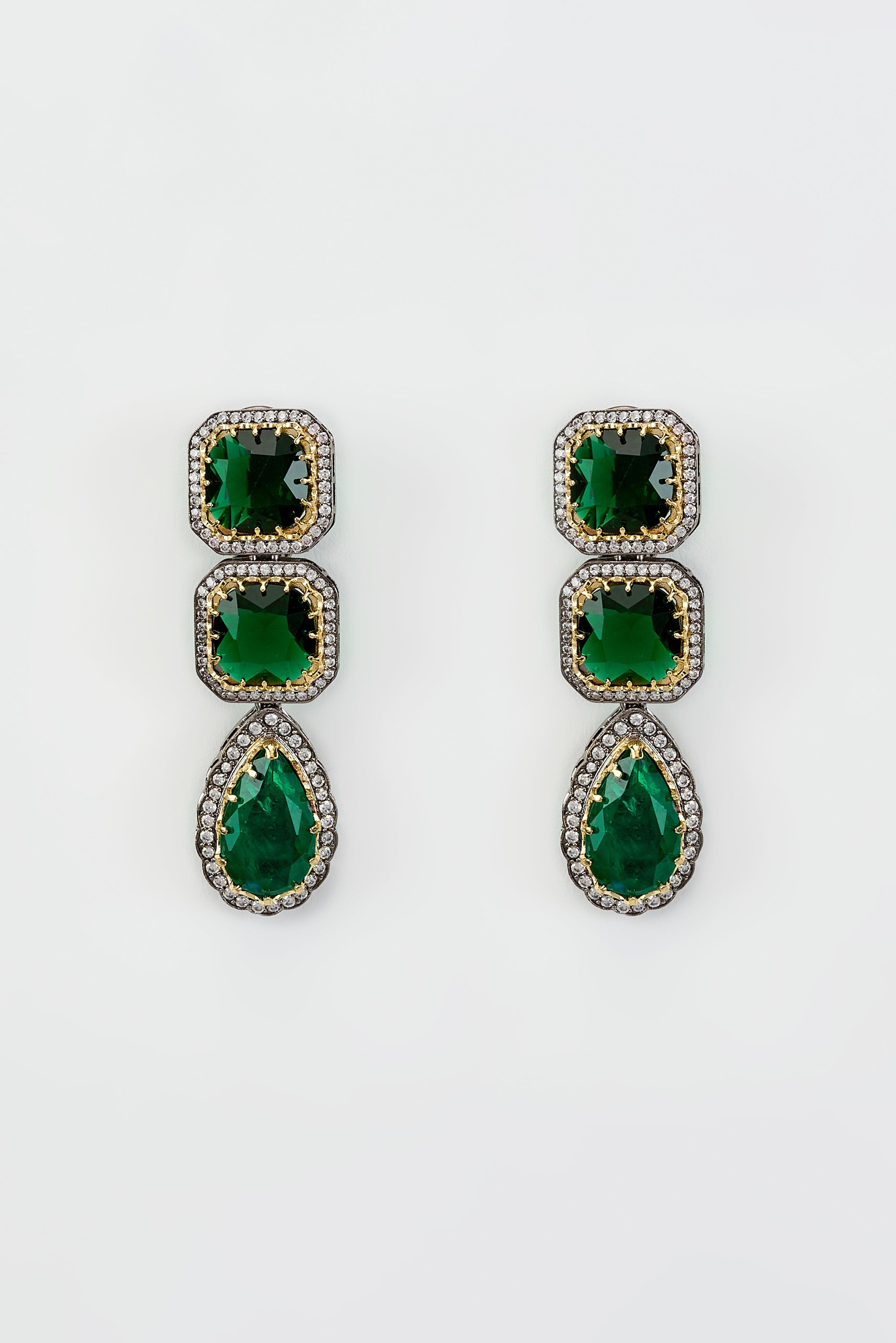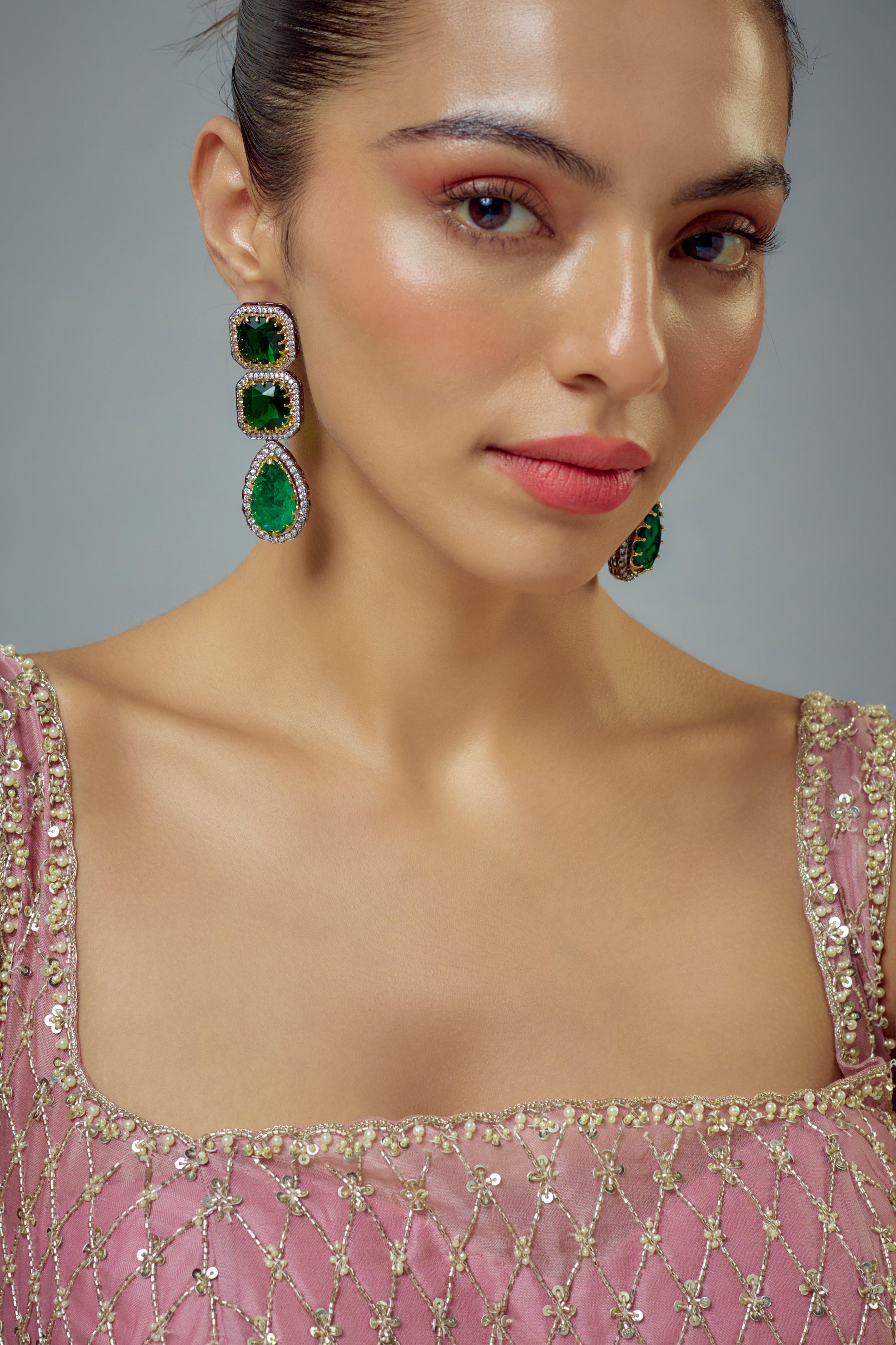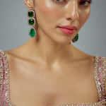 Exude timeless elegance with these exquisite green stone earrings, framed by delicate crystals. Perfect for wedding & festive occasions, they add a luxurious touch to any attire, enhancing your charm.