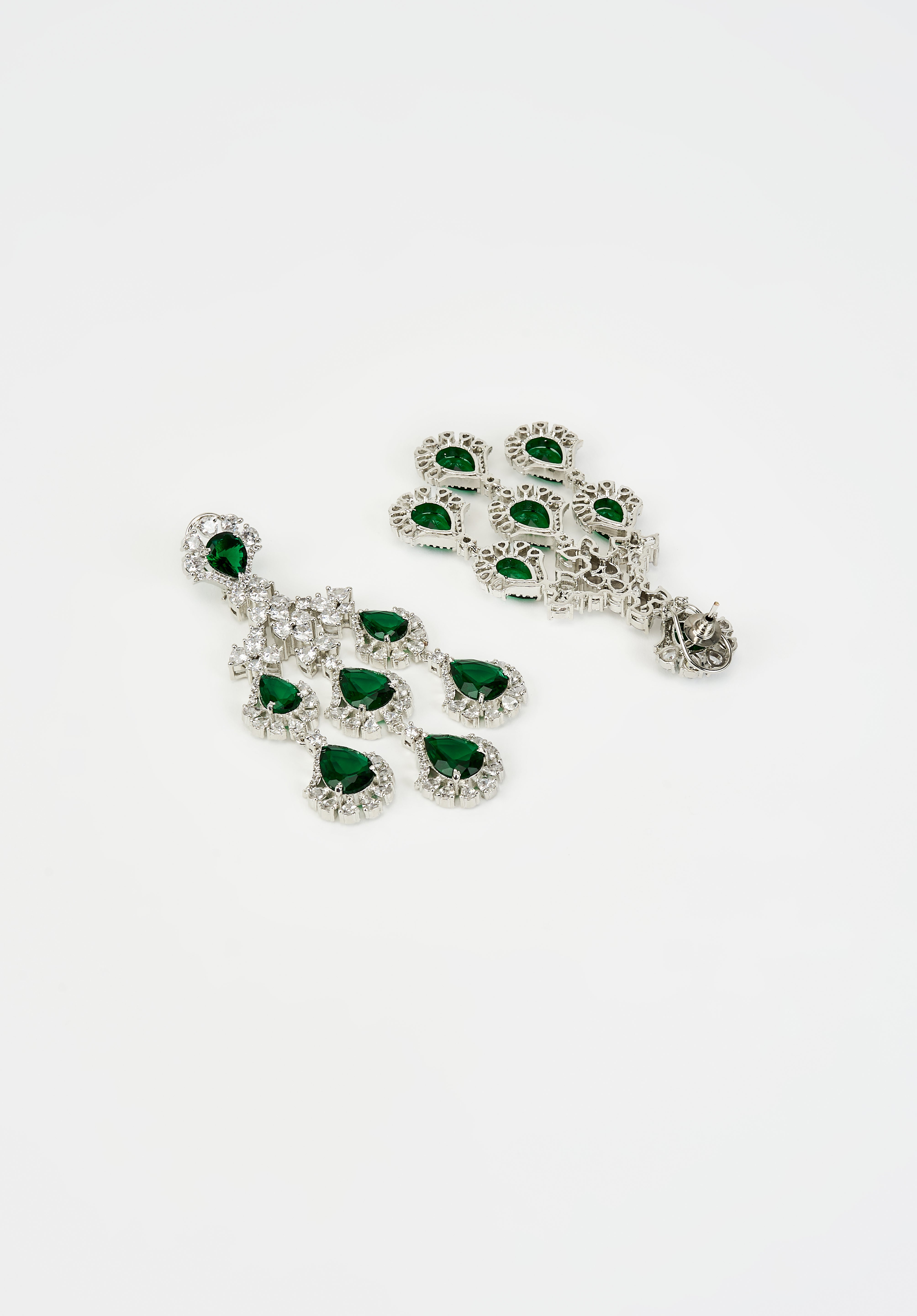 Zia Silver Plated Green Zircon Womens Pair of Danglers Earrings (Freesize)