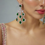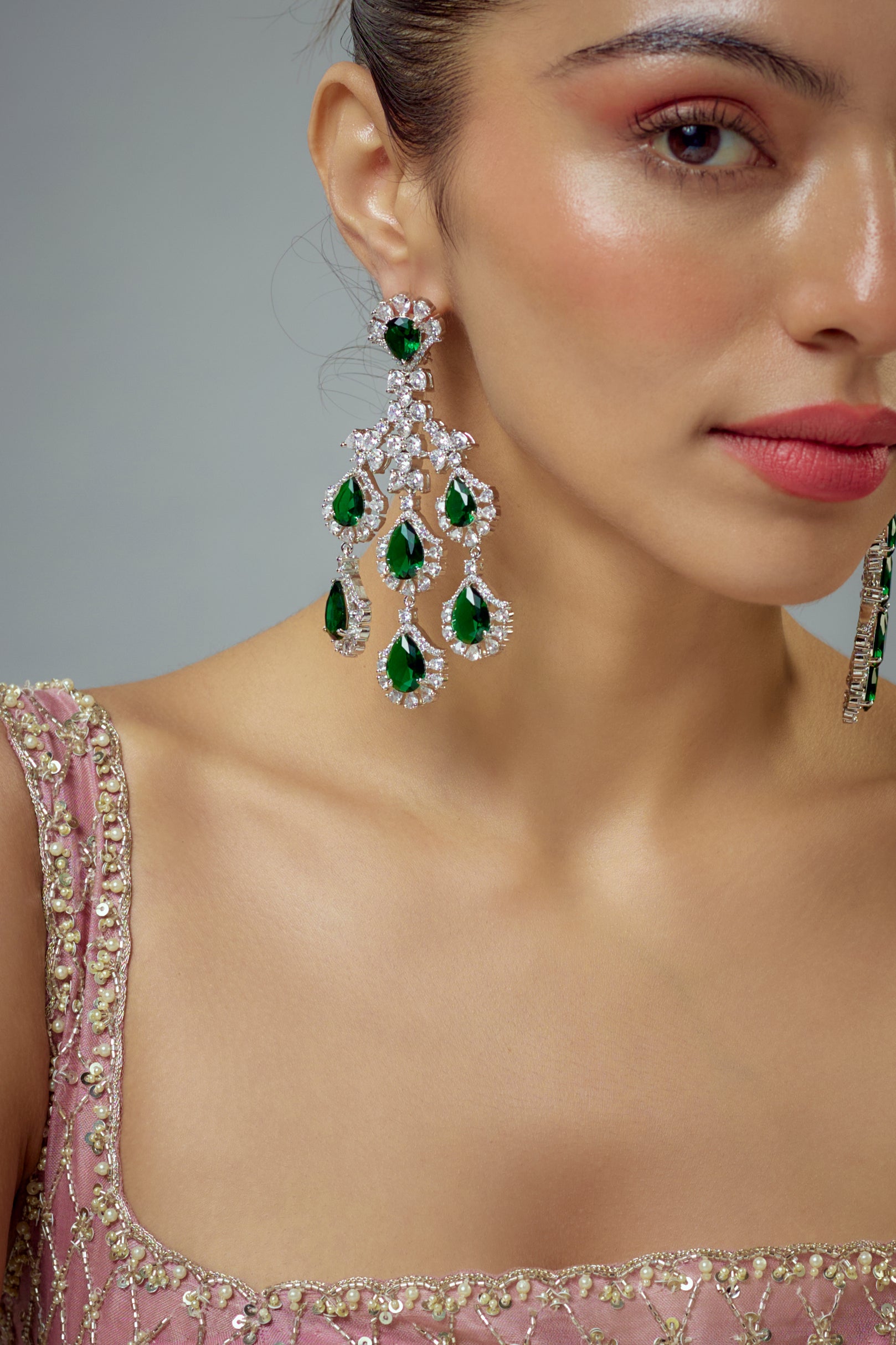 Elegant drop earrings featuring vibrant green gemstone,adorned with sparkling crystal.Perfect for wedding & festive occasion,these lightweight yet luxurious earring add timeless charm to any outfit.