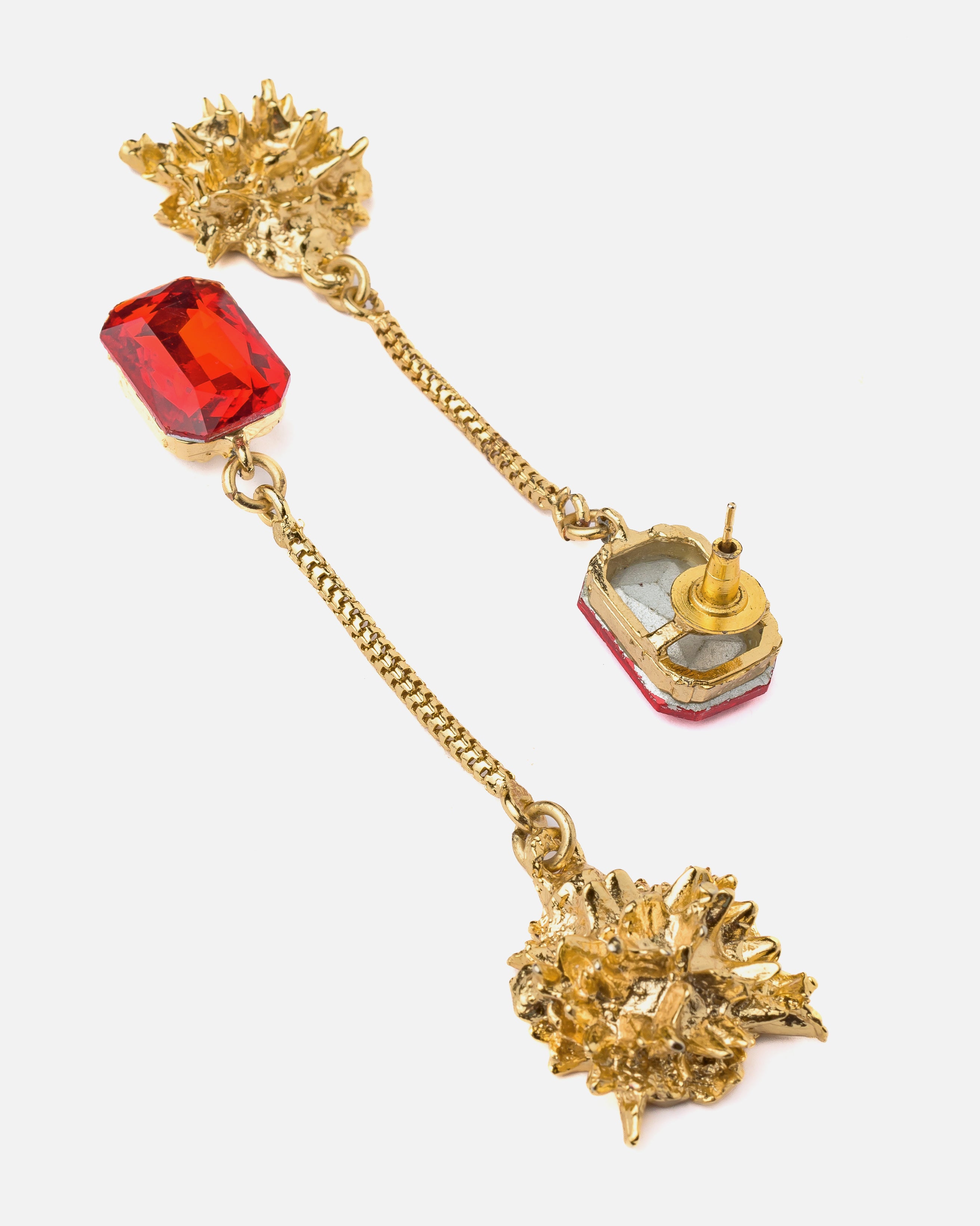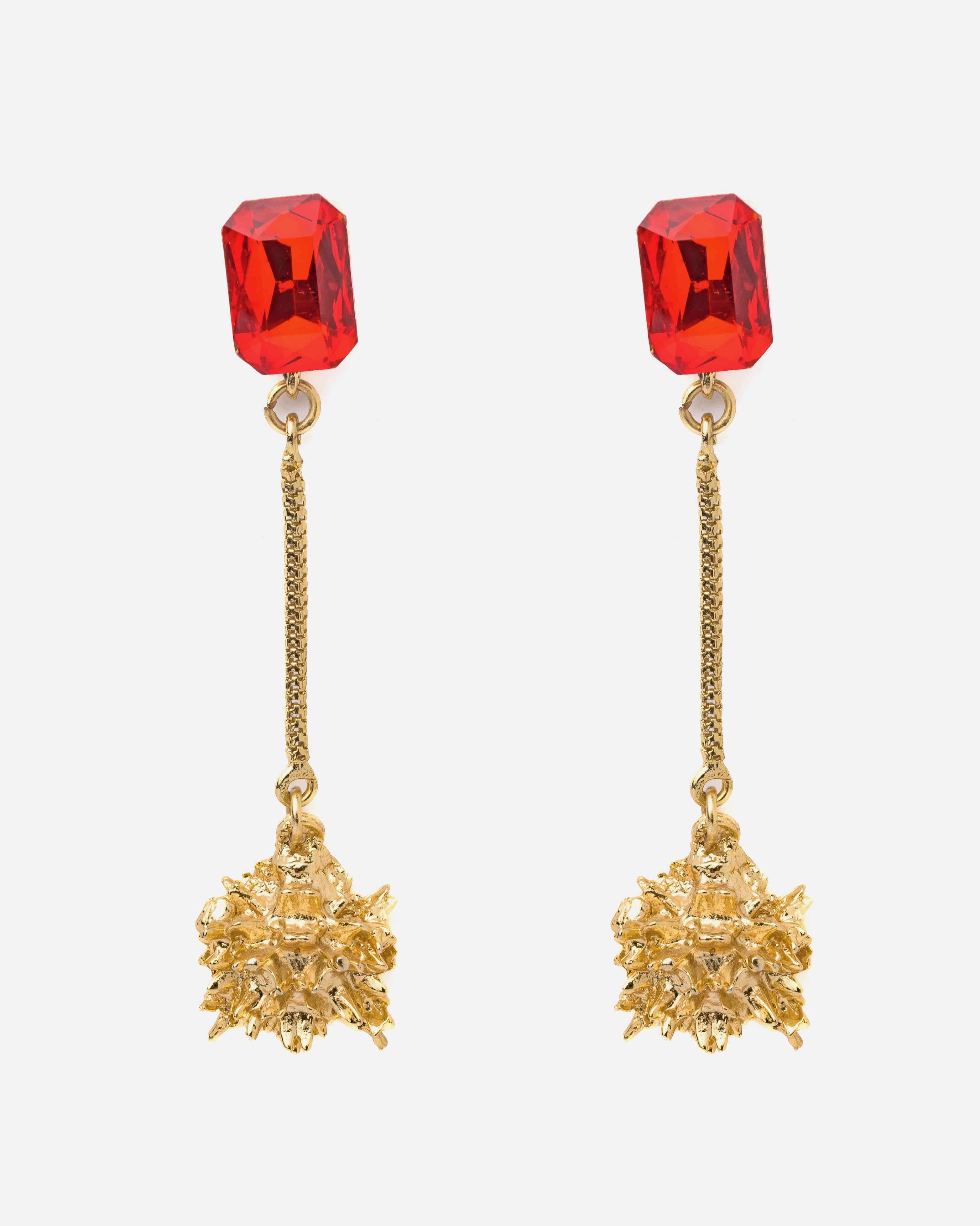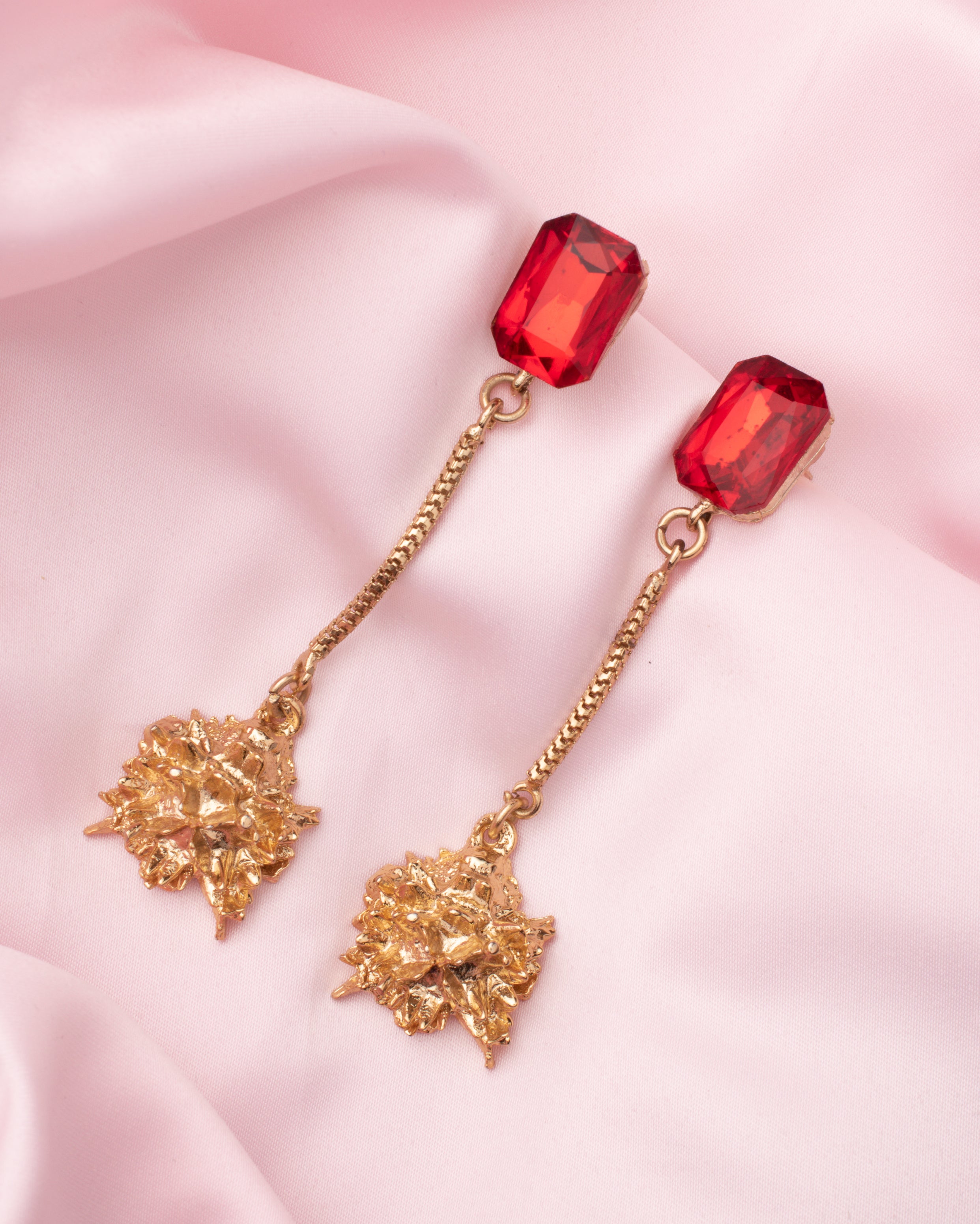 - Elegant Design – Stunning long-drop earrings with vibrant red gemstones and intricate gold detailing.