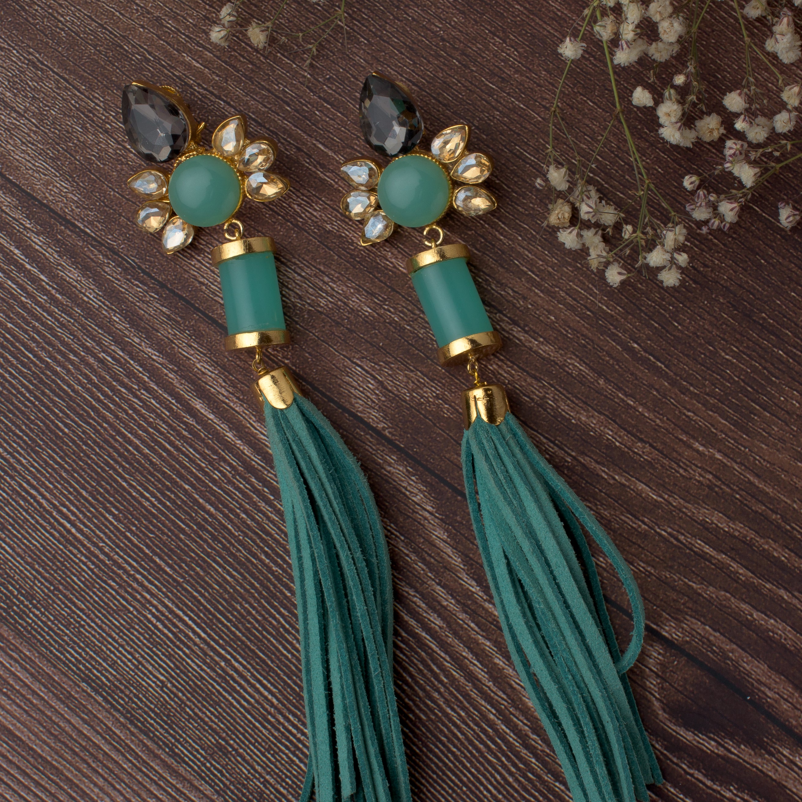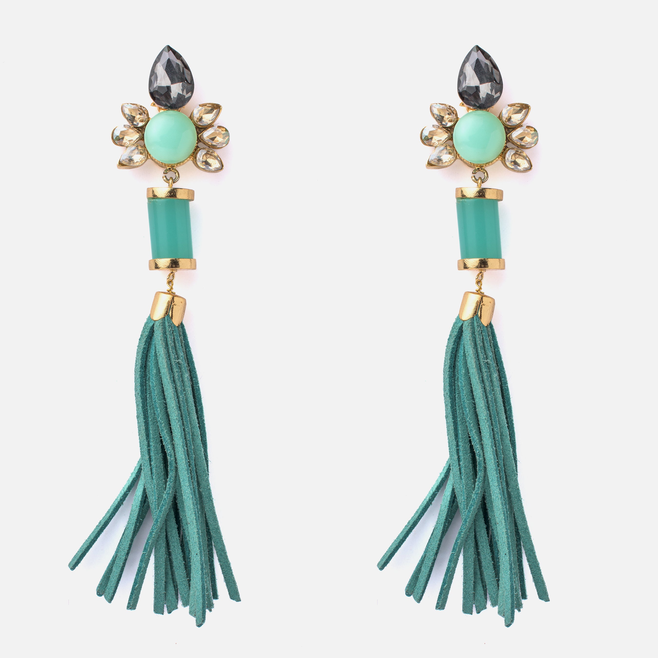 Florence Gold Plated Green Womens Pair of Dangle Earrings