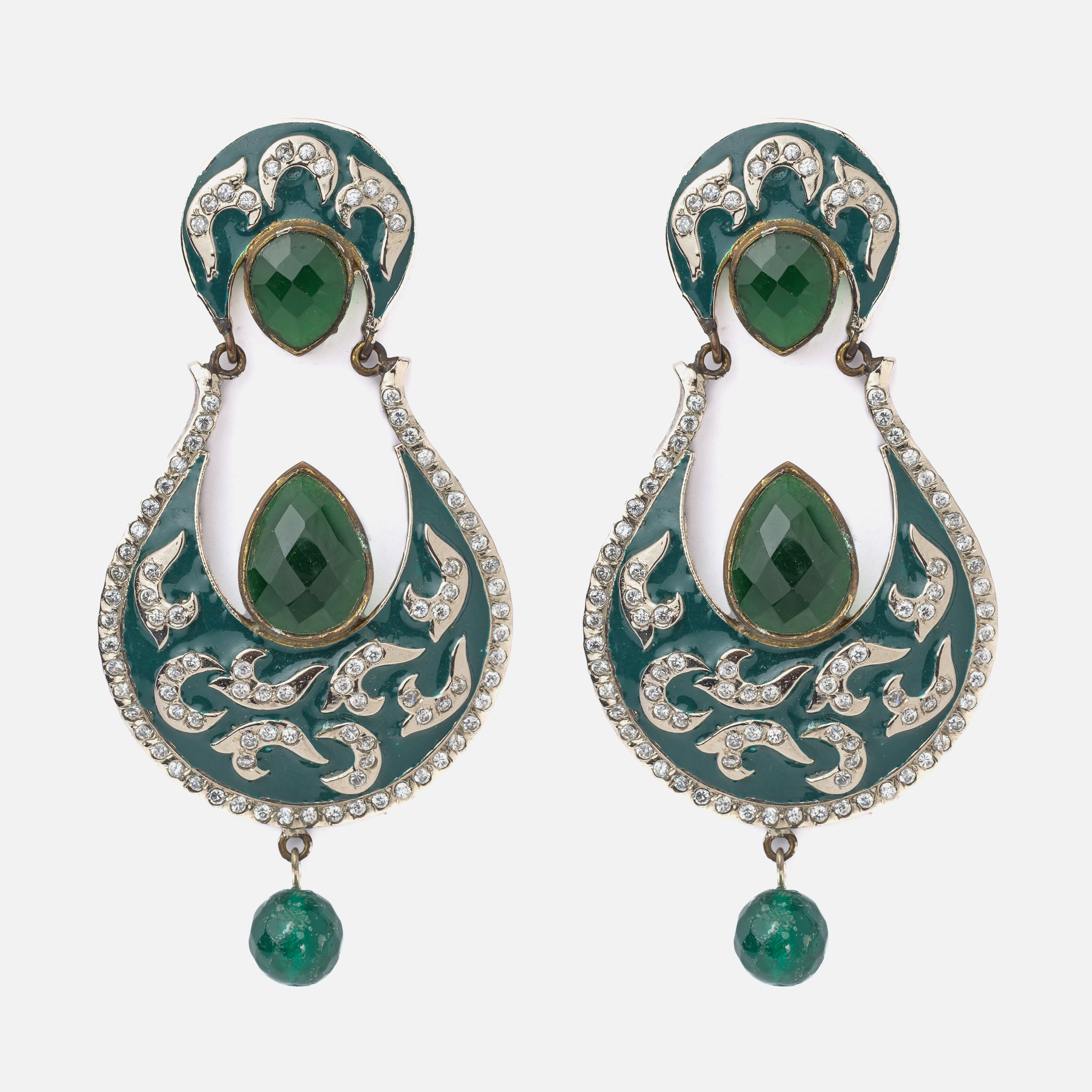 Florence Silver Plated Green Womens Pair of Dangle Earrings