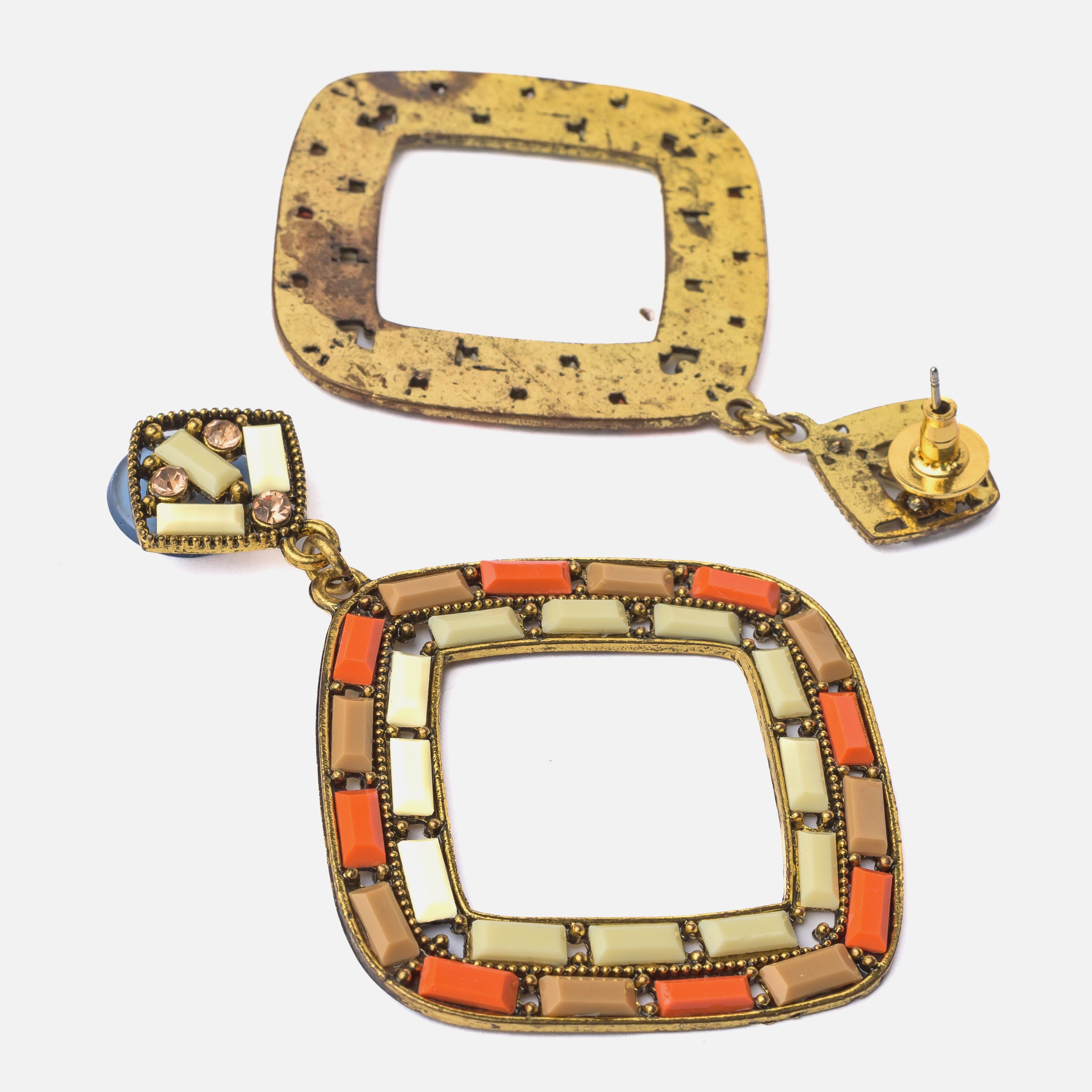 Florence Gold Plated Orange Womens Pair of Dangle Earrings