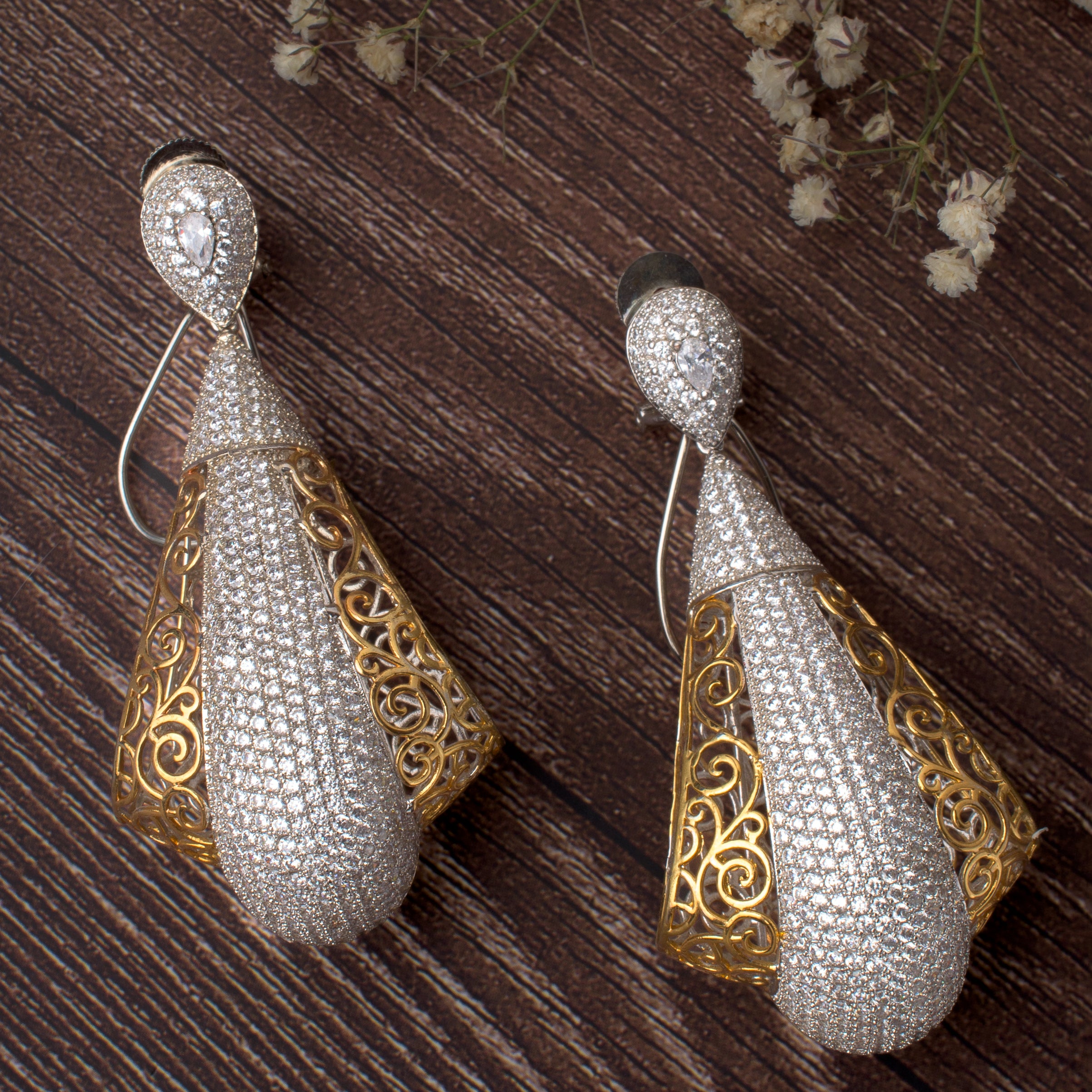 Florence Gold Plated White Womens Pair of Dangle Earrings