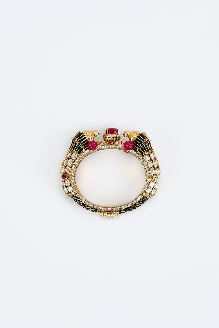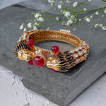 Florence Gold Plated Red Womens Kundan, Polki Kadas (Freesize)
