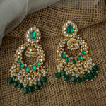 Gold Plated Green Womens Kundan, Polki Pair of Earrings