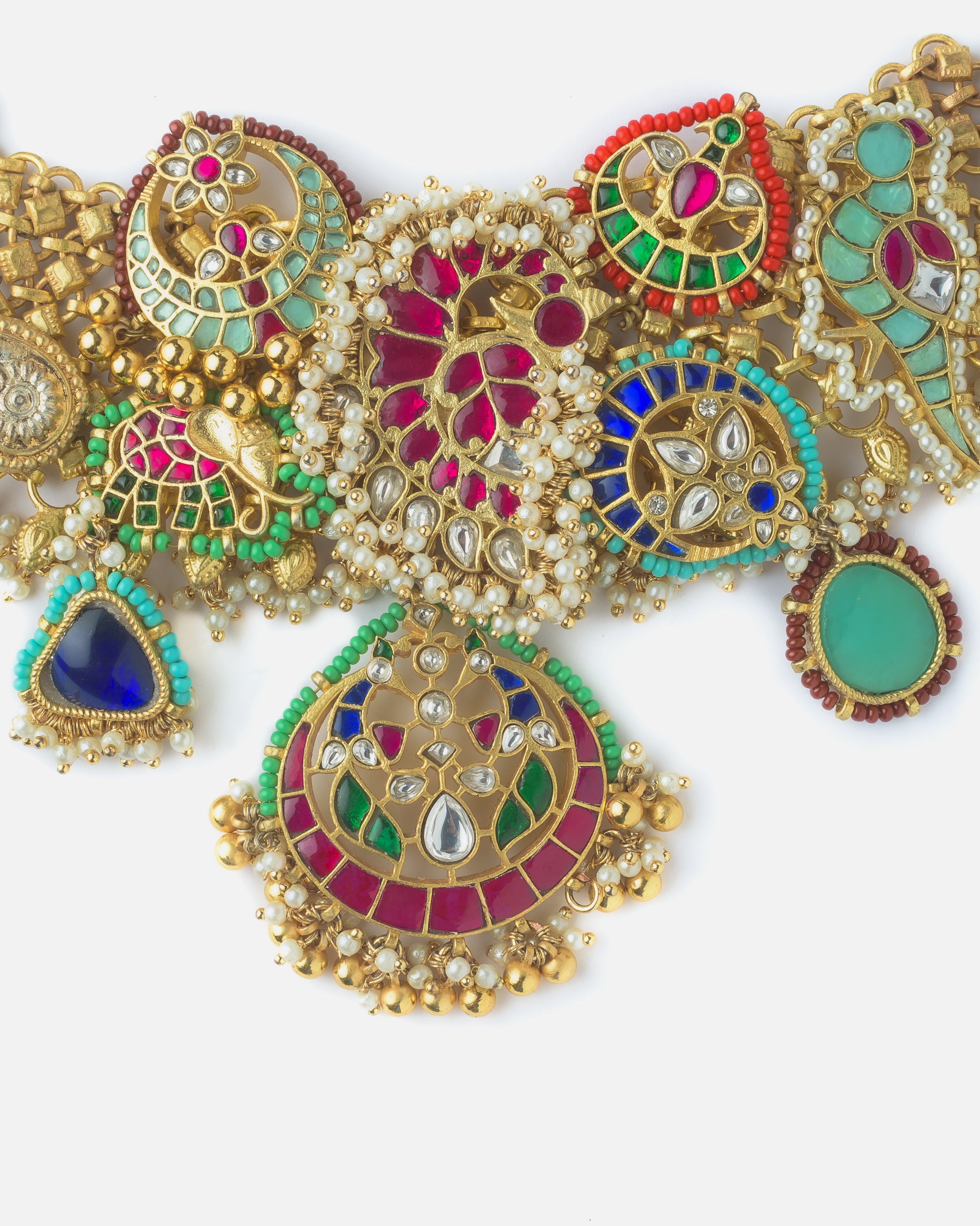 - Statement Necklace Design: Broad, layered front with assorted motifs and pearl embellishments creates a grand, festive appeal.